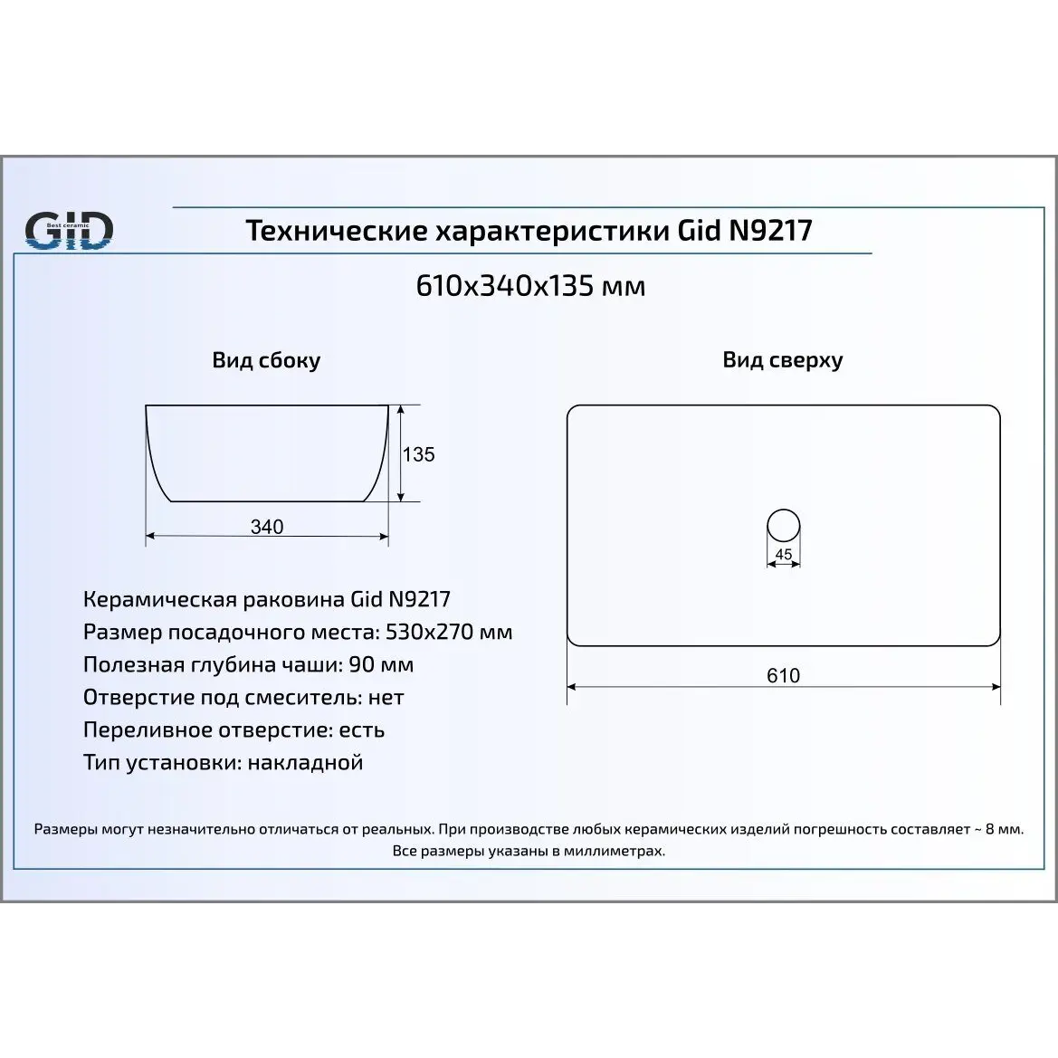 Накладная раковина