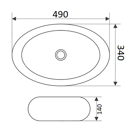 Фаянсовая, накладная. Устанавливается на столешницу. Диаметр слива: 45 мм
