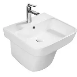 Фаянсовая, подвесная. Крепится на стену. Диаметр слива: 45 мм