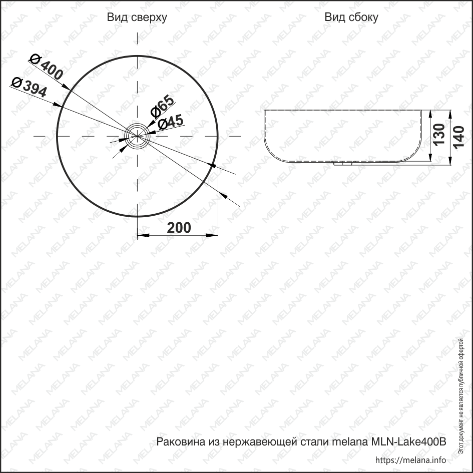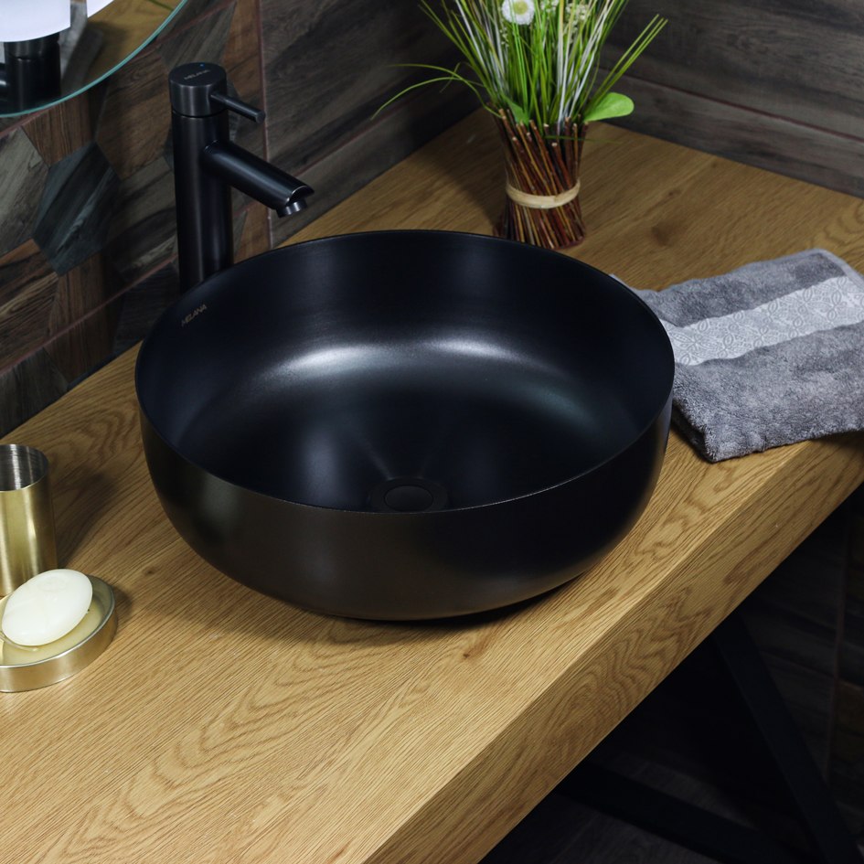 Раковина 400B Lake MELANA Profline ГРАФИТ накладная круглая 400B, Сифон, донный клапан