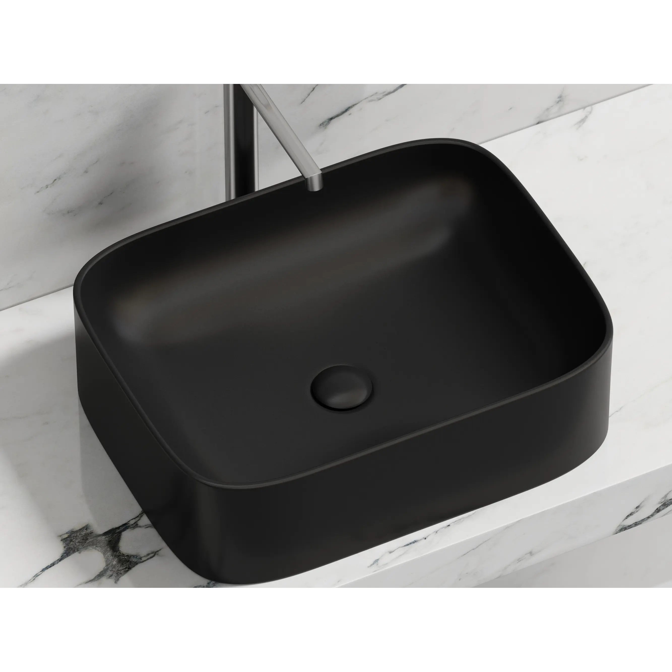 Умывальник чаша Ceramica Nova накладная прямоугольная (цвет Черный Матовый) Element 505*380*150мм
