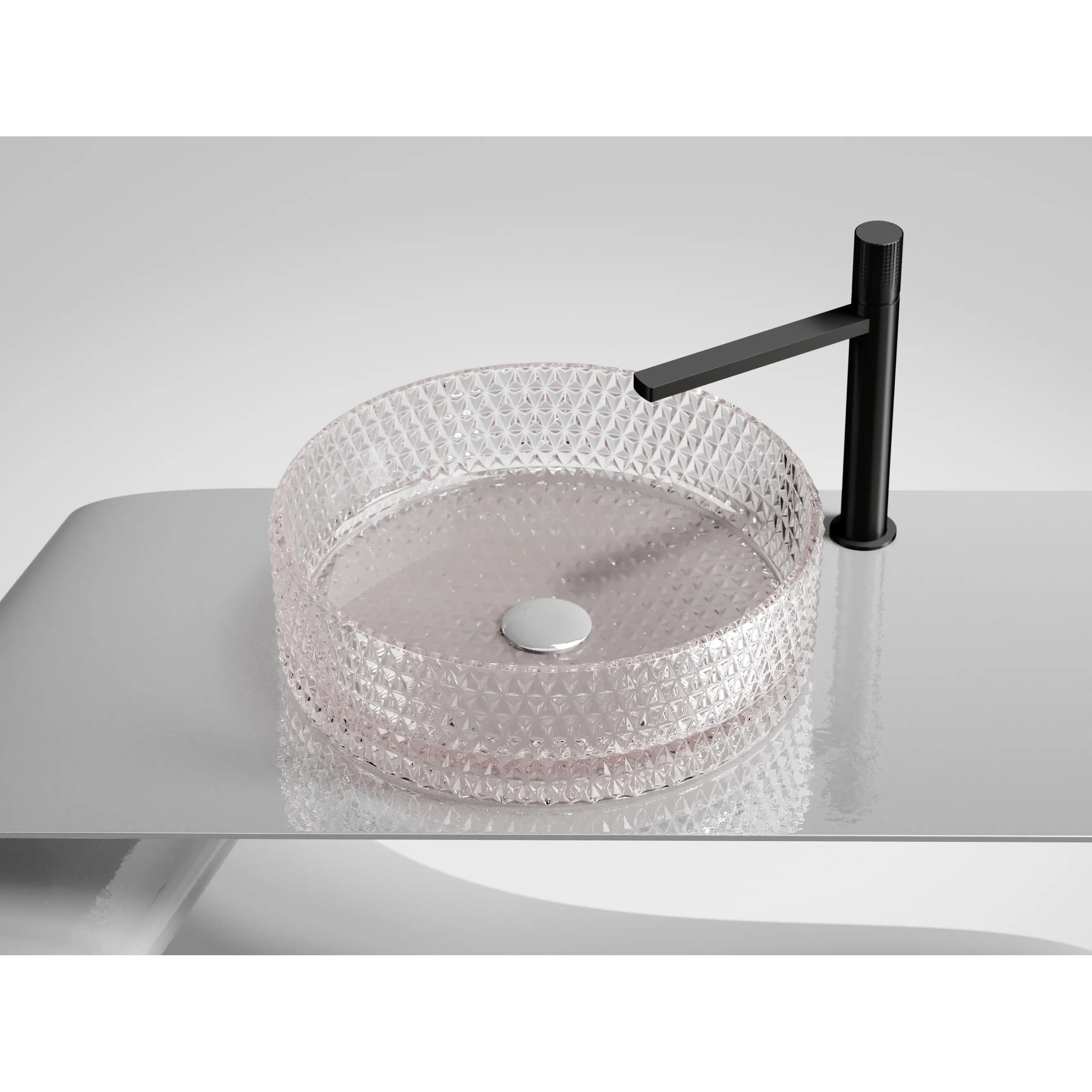 Умывальник чаша накладная круглая (цвет розовый) Cristal 360*360*112мм
