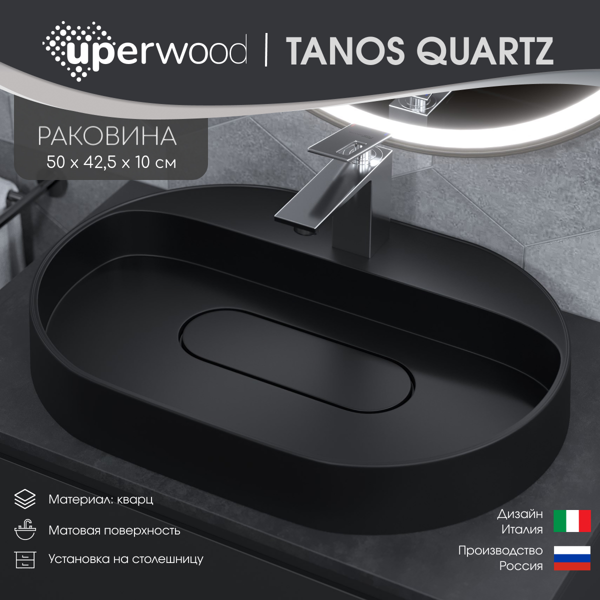Экологичность кварцевого композита обеспечивает абсолютную безопасность для здоровья человека. Срок службы раковин для ванной Uperwood Tanos Quartz более 15 лет, гарантия от производите 4 года.Коллекция представлена раковинами овальной и прямоугольной формы. Лаконичная форма накладных раковин Tanos Quartz отлично впишется любой современный интерьер ванной комнаты.