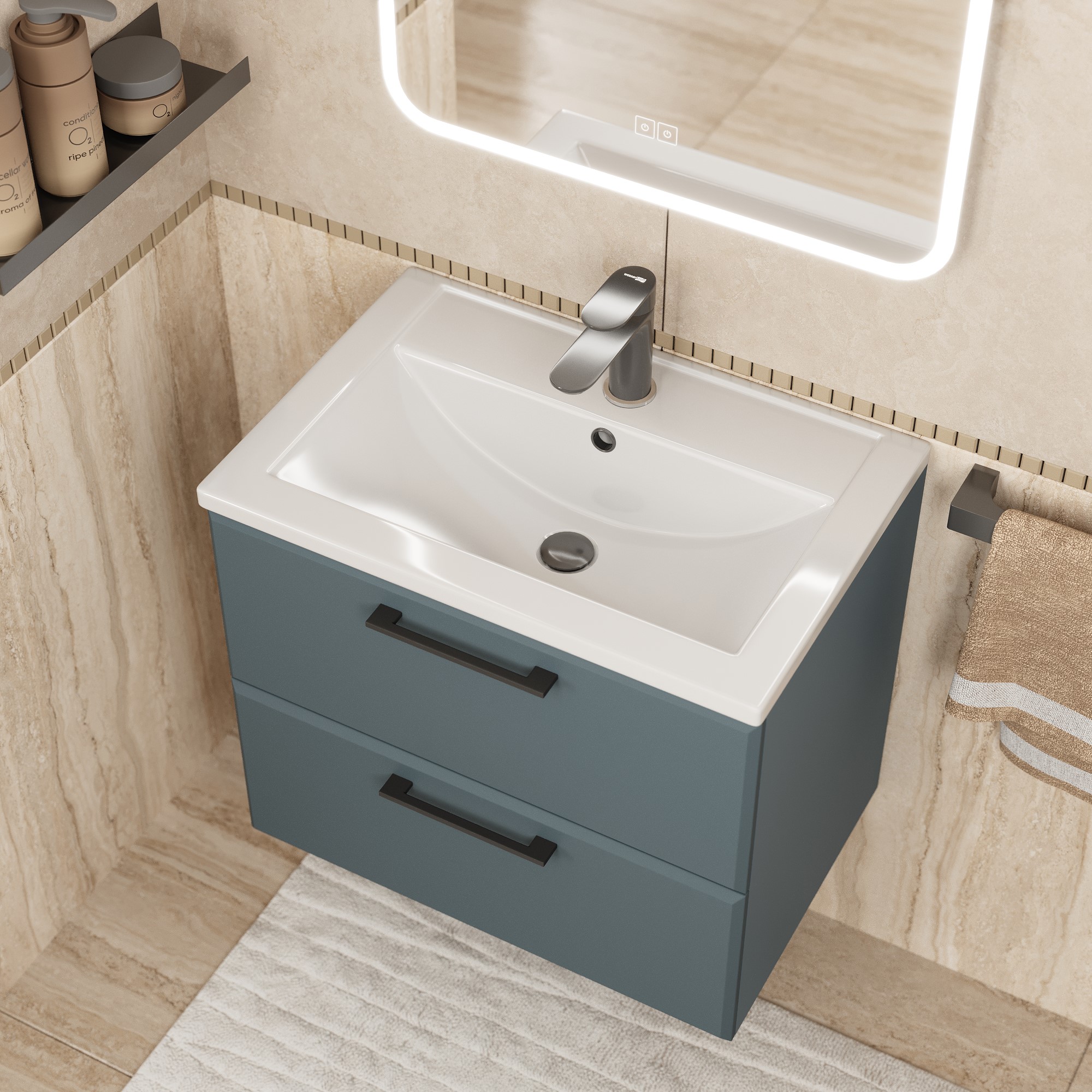 Комплект из тумбы с раковиной можно дополнить зеркалом с подсветкой Uperwood Foster шириной от 60 до 100 см и подвесным шкафом-пеналом Uperwood Foster в цвет тумбы.Монтаж раковины производится только на тумбу.