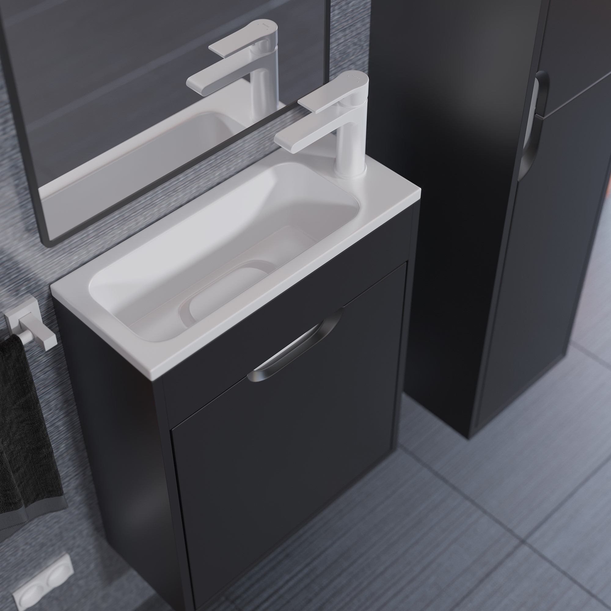 Коллекция Modul представлена раковинами шириной 50 и 60 см, 62, 77, 97 и 122 см (фактическая ширина раковин).
