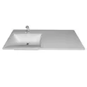 Раковина устанавливается над стиральной машиной и совмещает в себе удобство и функциональность. На поверхности столешницы можно разместить полотенца или косметические средства, а под столешницей расположить стиральную машину. Также Марсалы изготавливаются с левой или правой чашей.