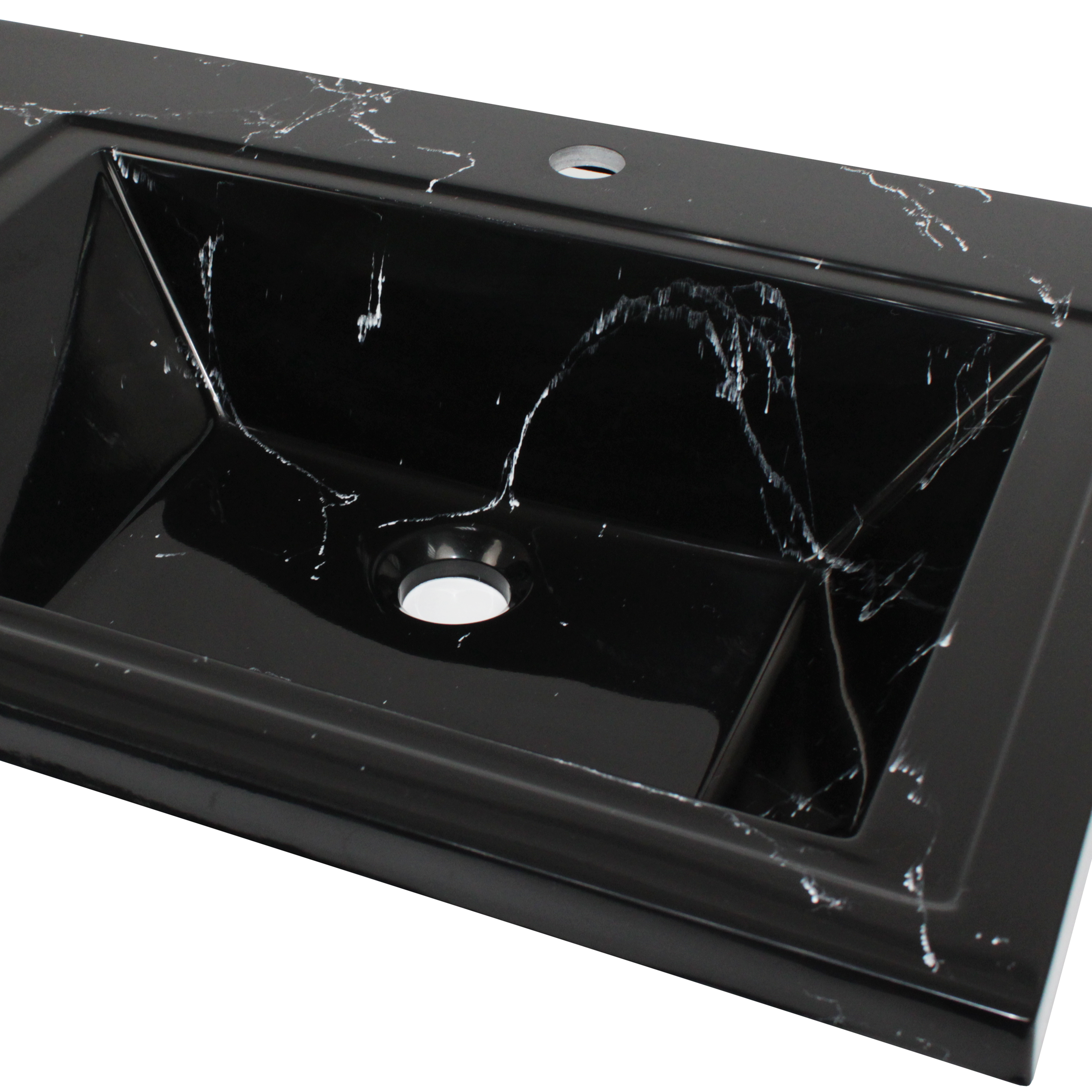 Раковина над стиральной машиной Uperwood Марсал 120х48,6х15 см, черный мрамор, левая, крыло справа
