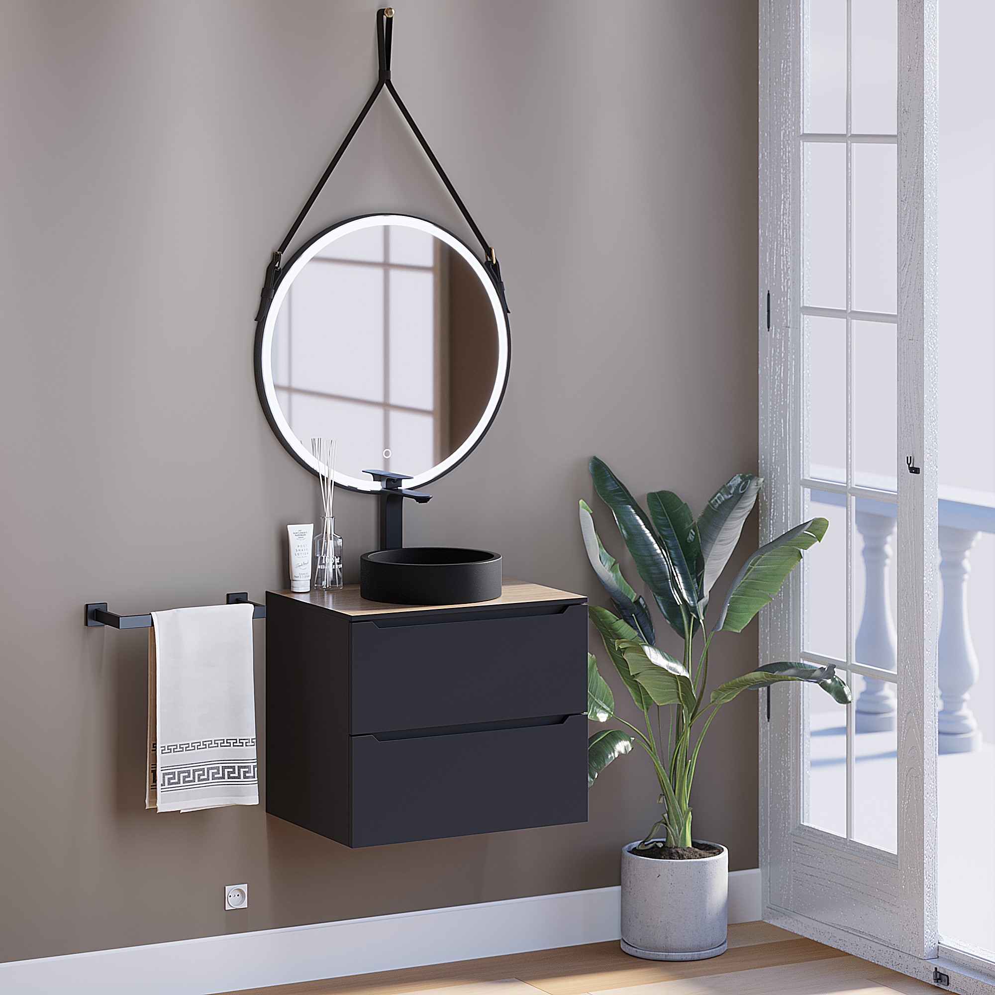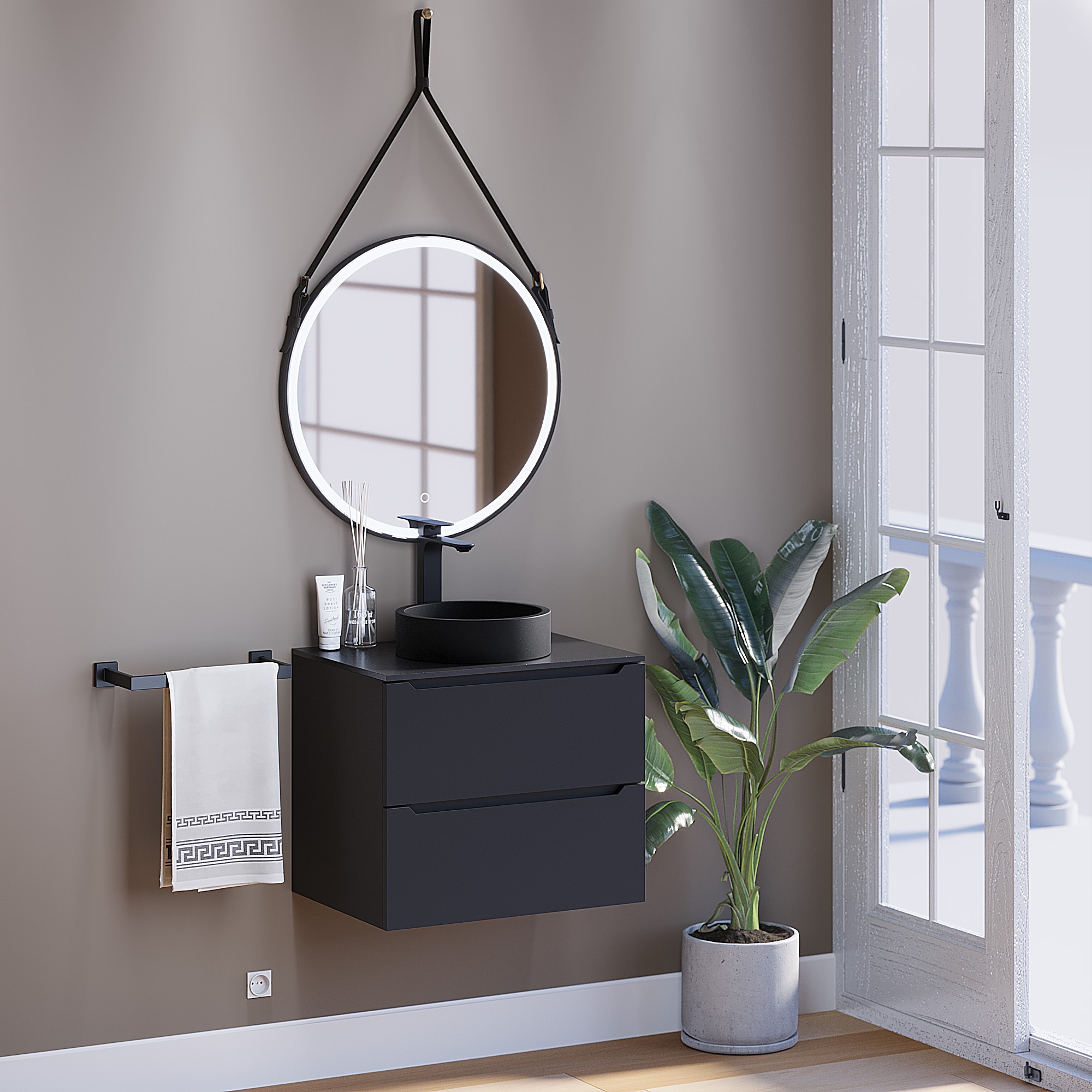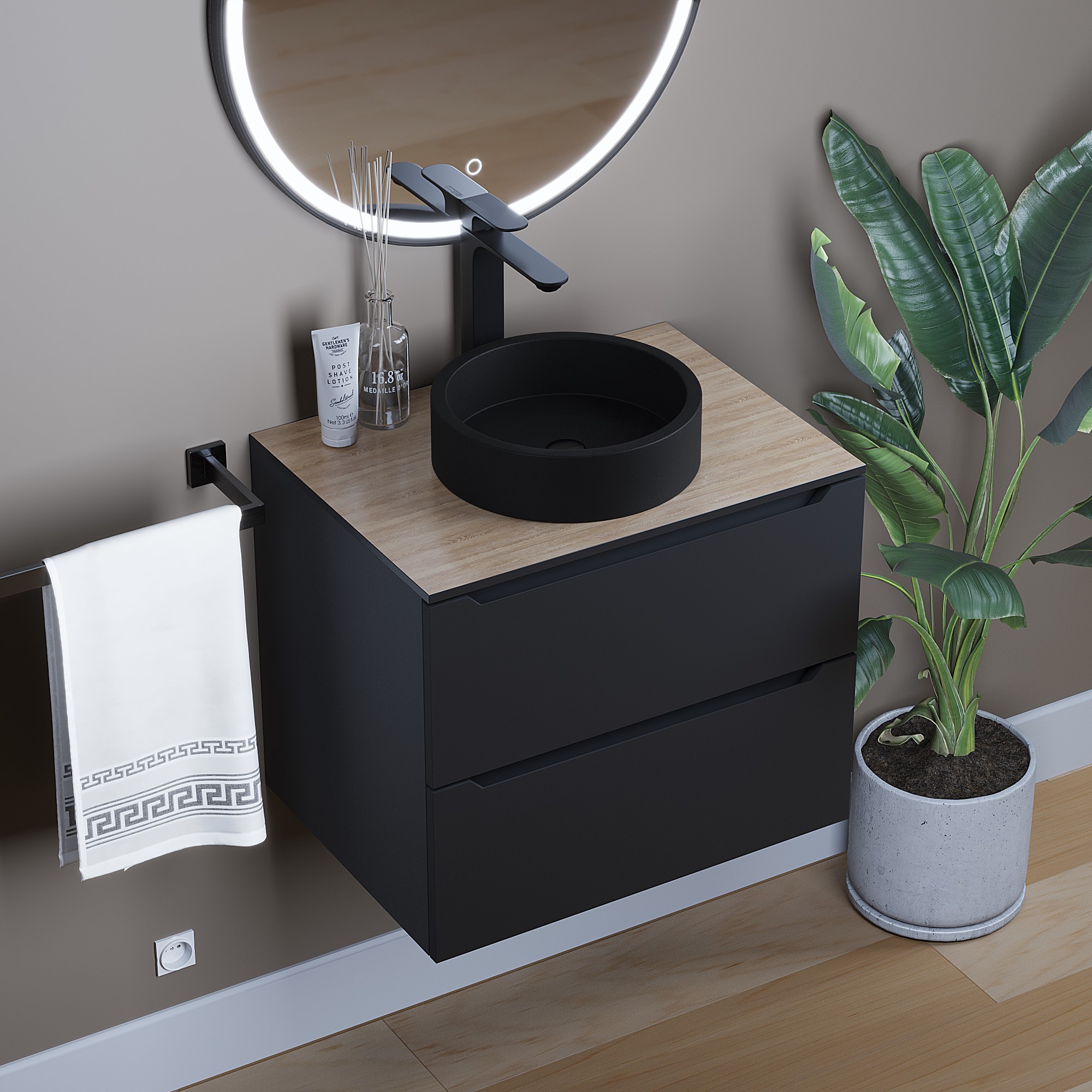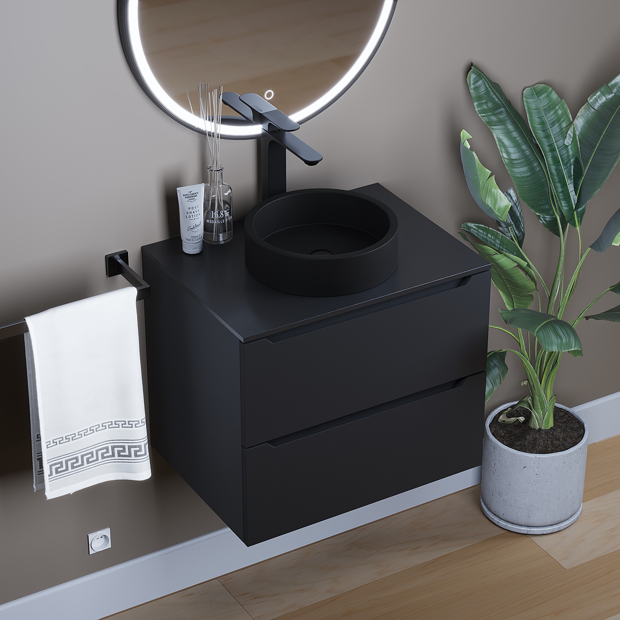 Раковина для ванной комнаты накладная, бетонная Uperwood Round 34 см, круглая, черная, на тумбу, мойка, умывальник для туалета.В данной раковине сочетаются простота, лаконичность, компактные размеры и невысокая цена.