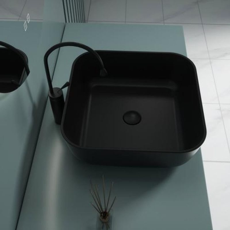 Раковина на столешницу. Цвет Матовый чёрный. Без донного клапана.
