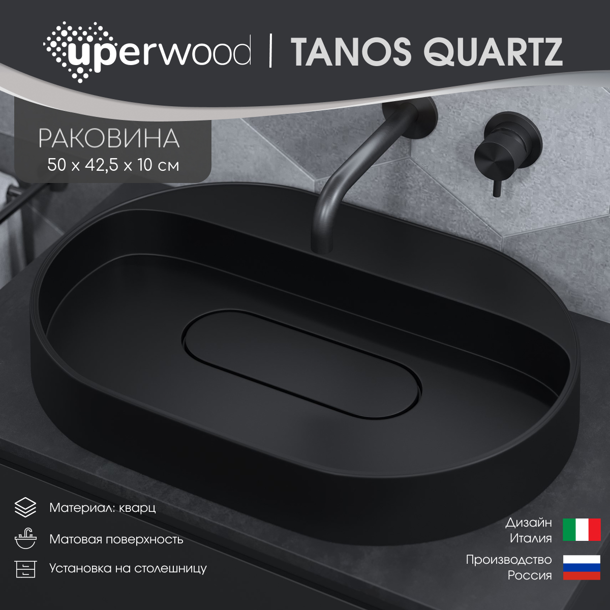 Экологичность кварцевого композита обеспечивает абсолютную безопасность для здоровья человека. Срок службы раковин для ванной Uperwood Tanos Quartz более 15 лет, гарантия от производите 4 года.Коллекция представлена раковинами овальной и прямоугольной формы