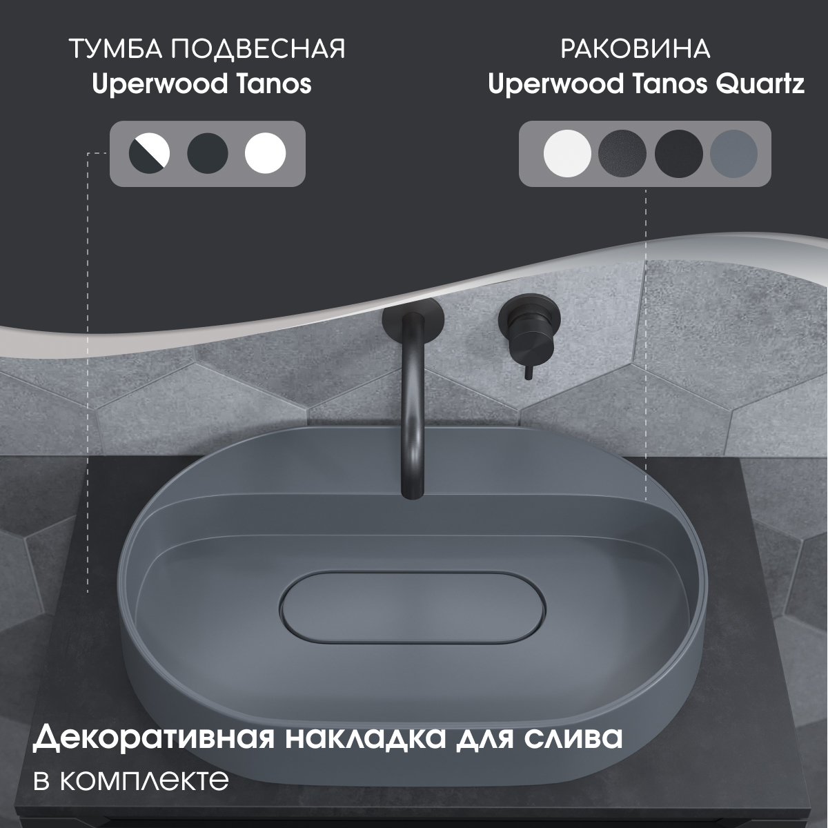 Для установки под раковины Tanos Quartz рекомендуем рассмотреть тумбы из коллекции Uperwood Tanos шириной от 60 см.