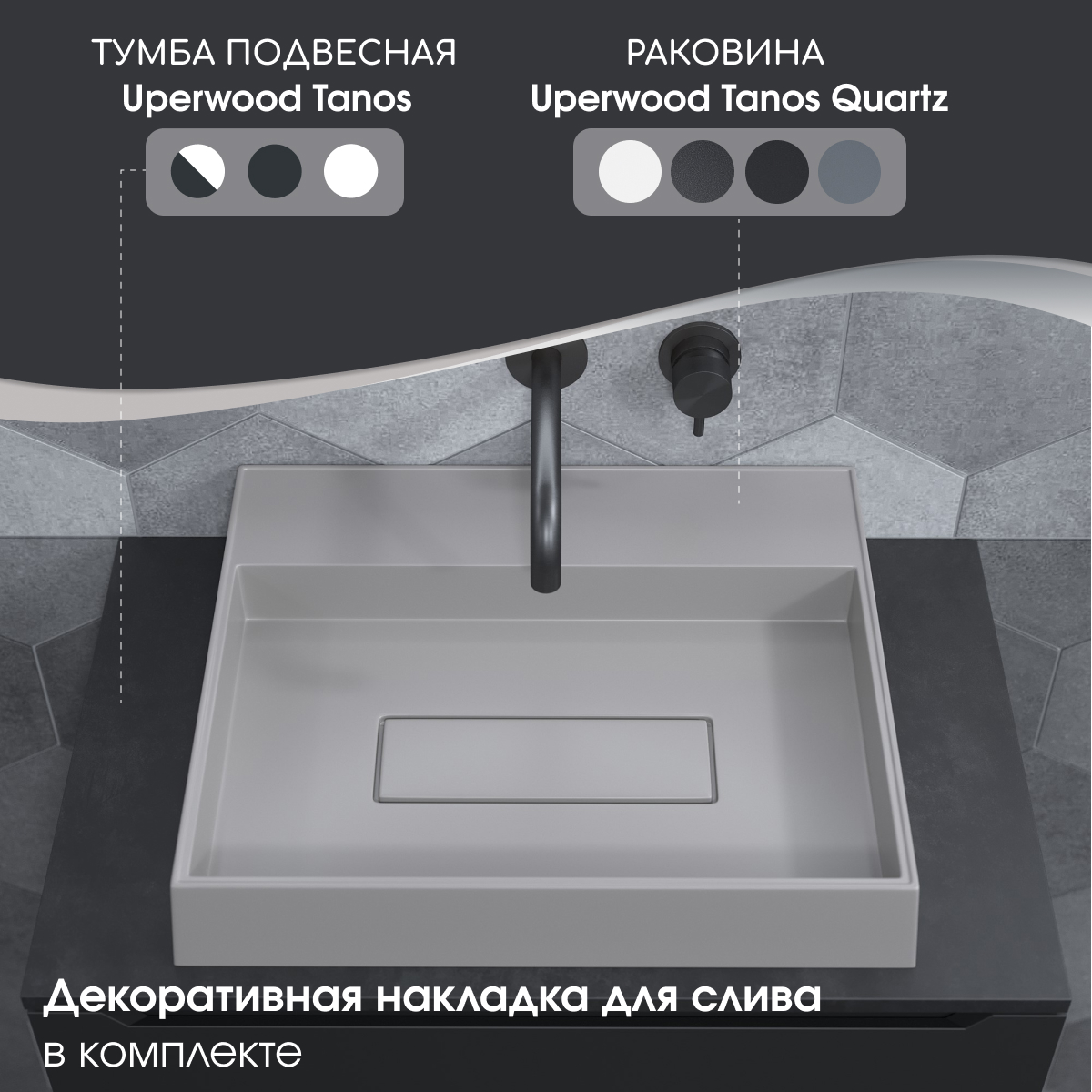 Для установки под раковины Tanos Quartz рекомендуем рассмотреть тумбы из коллекции Uperwood Tanos шириной от 60 см. Дополнительно потребуется приобрести столешницу, подходящую к габаритам изделий.