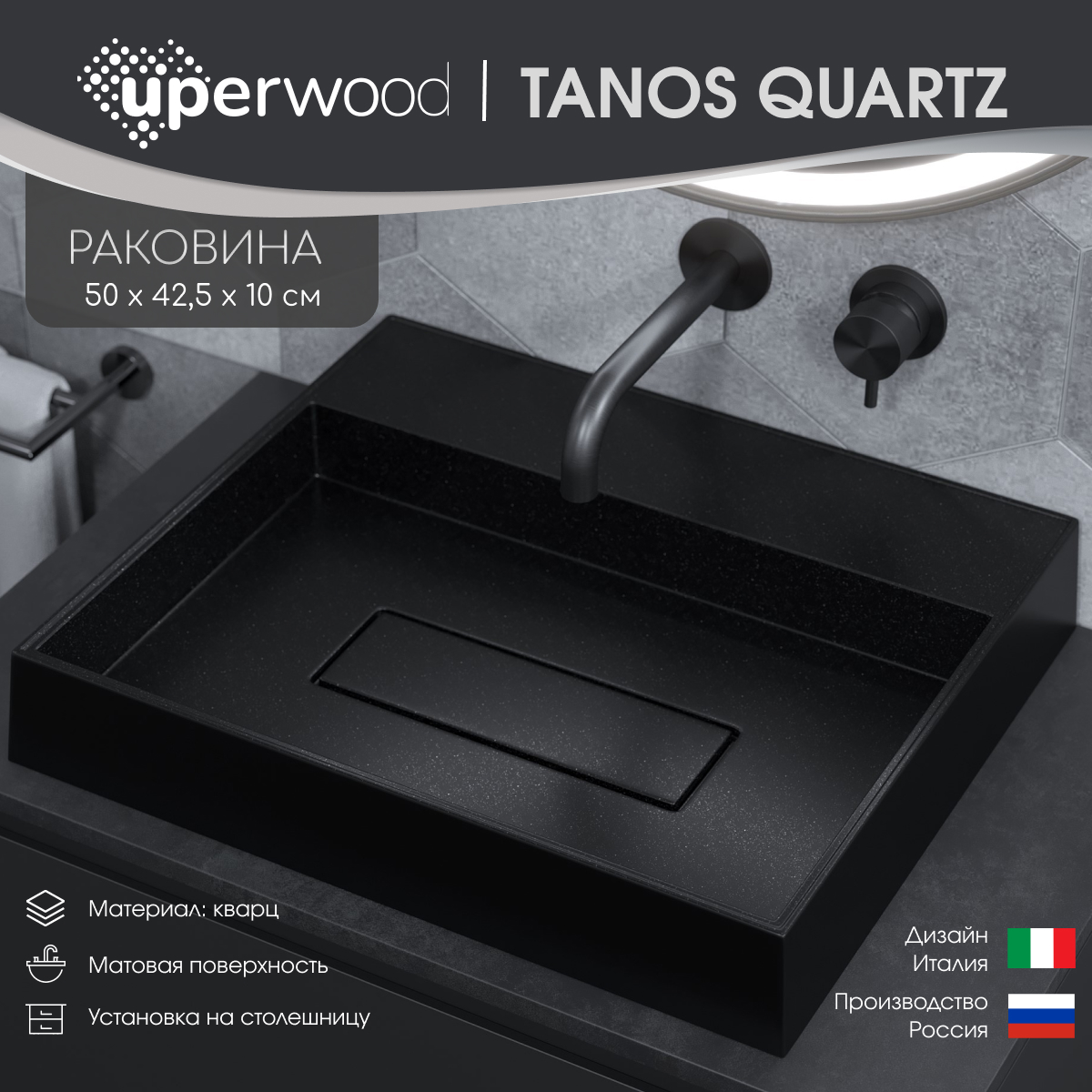 Экологичность кварцевого композита обеспечивает абсолютную безопасность для здоровья человека. Срок службы раковин для ванной Uperwood Tanos Quartz более 15 лет, гарантия от производите 4 года.Коллекция представлена раковинами овальной и прямоугольной формы. Лаконичная форма накладных раковин Tanos Quartz отлично впишется любой современный интерьер ванной комнаты.