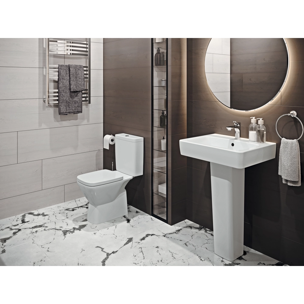 КОМПЛЕКТУЮЩИЕ: раковина, хромированное кольцо, комплект крепления.