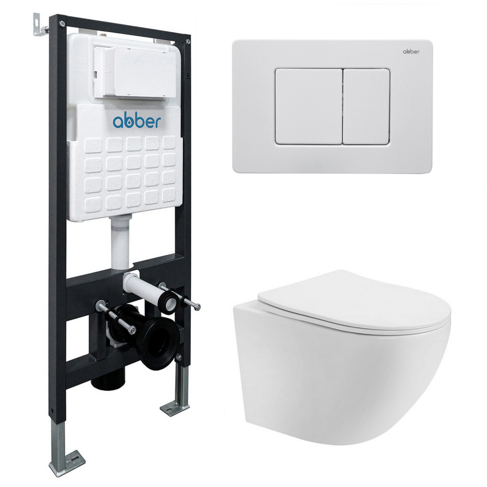Комплект подвесной унитаз ABBER Bequem AC1100T белый с инсталляцией AC0105 и кнопкой белая матовая