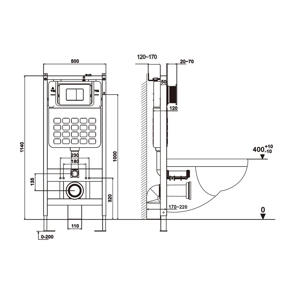 Комплект подвесной унитаз ABBER Rechteck AC1201MB черный матовый с инсталляцией AC0105 и кнопкой золото матовое