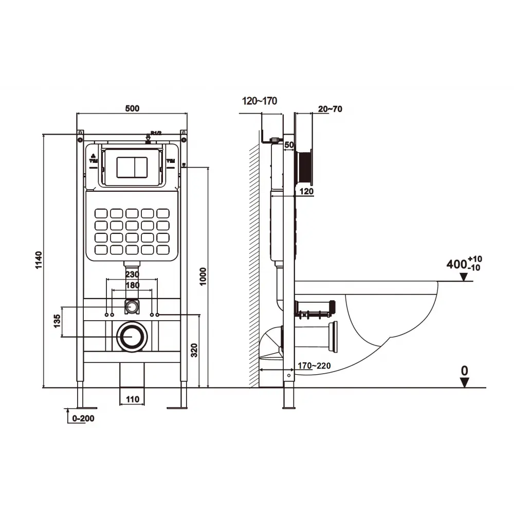 Комплект подвесной унитаз ABBER Rechteck AC1220TC белый, с закрытым дном с инсталляцией AC0105 и кнопкой AC0121NG никель