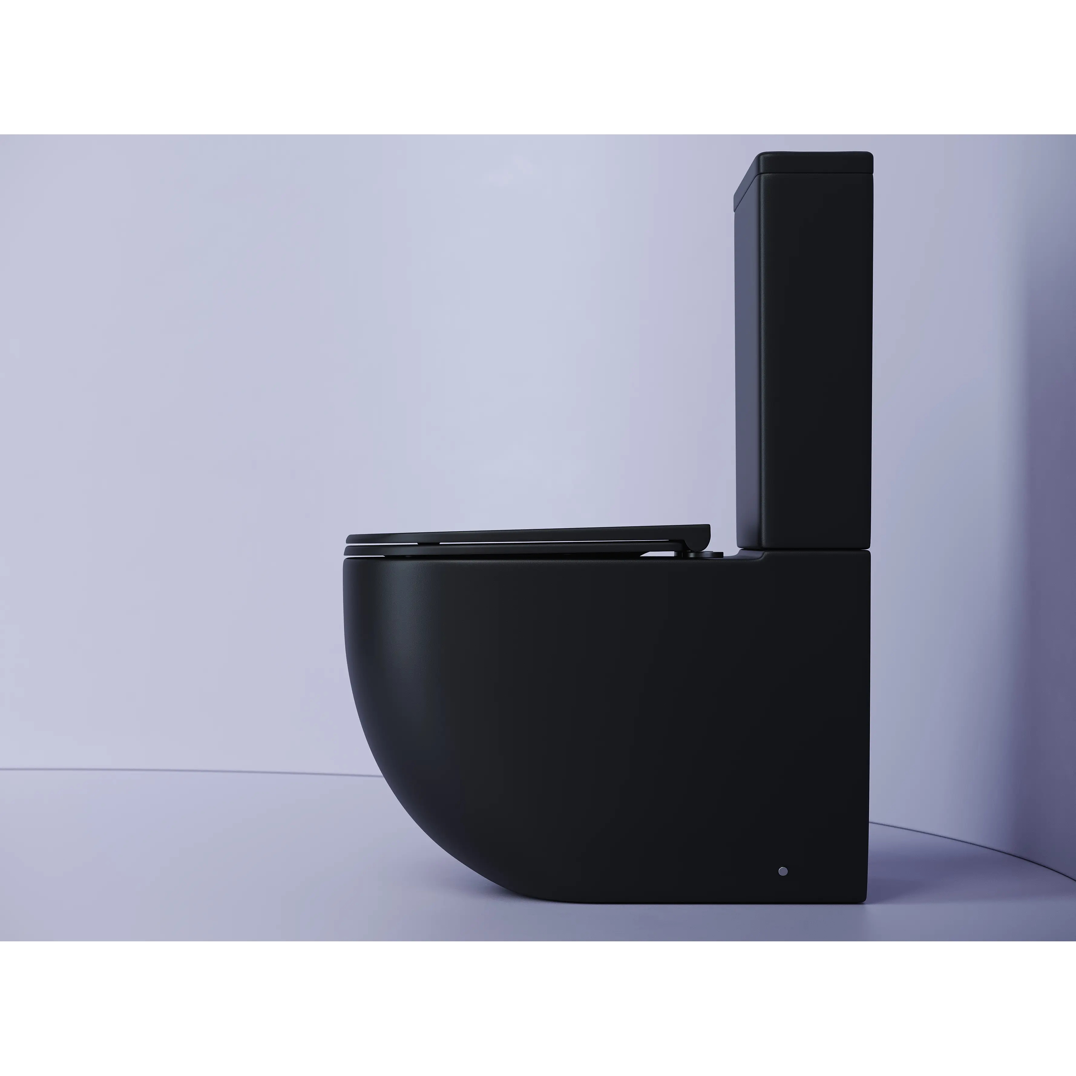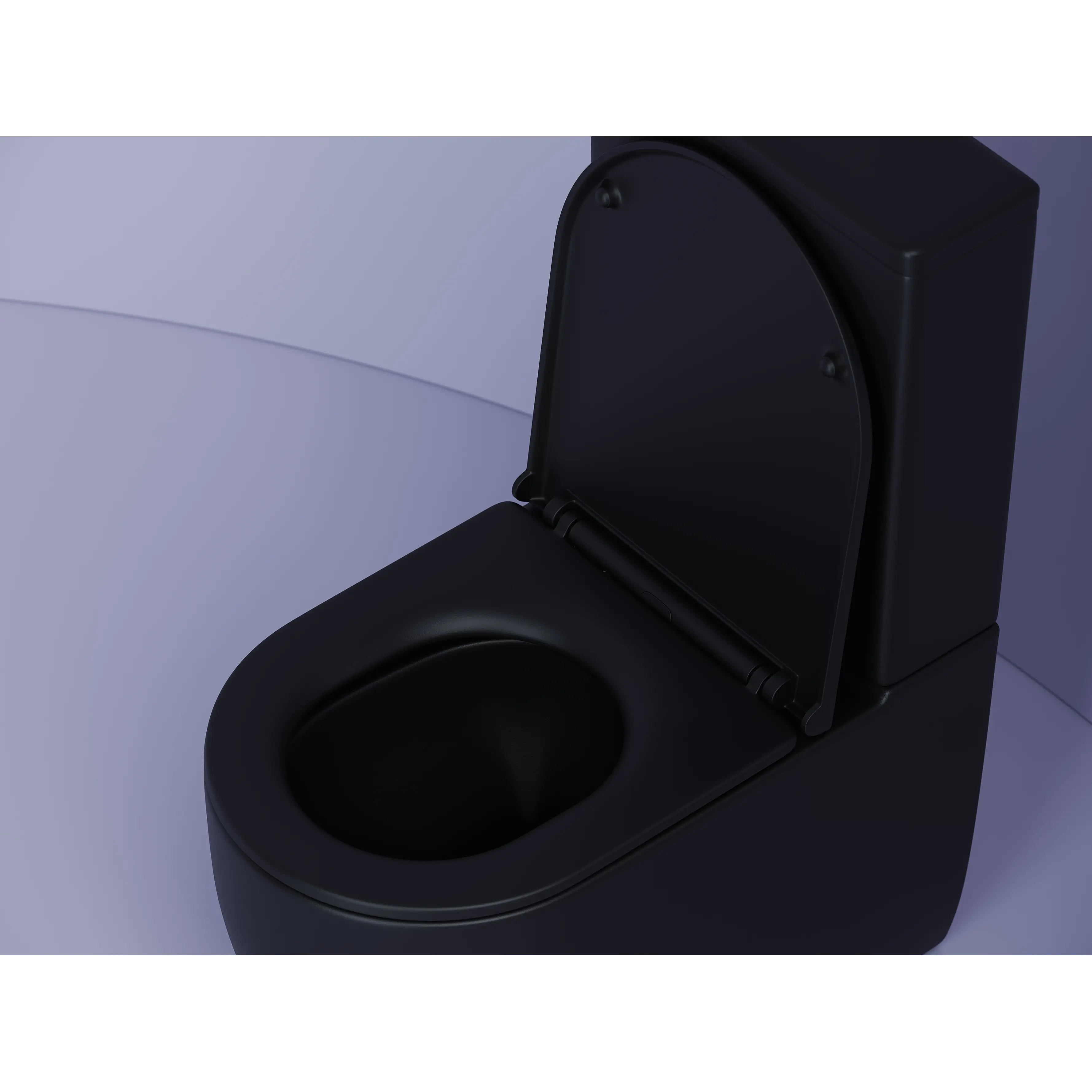 Напольный пристенный унитаз с бачком Metropol Rimless, двойной смыв 3/6 арматура, нижняя подводка глубокий смыв, горизонтальный (универсальный) выпуск, с крепежом, с ультра тонким сидением и крышкой с функцией плавного закрытия, дюропласт (цвет черный матовый)