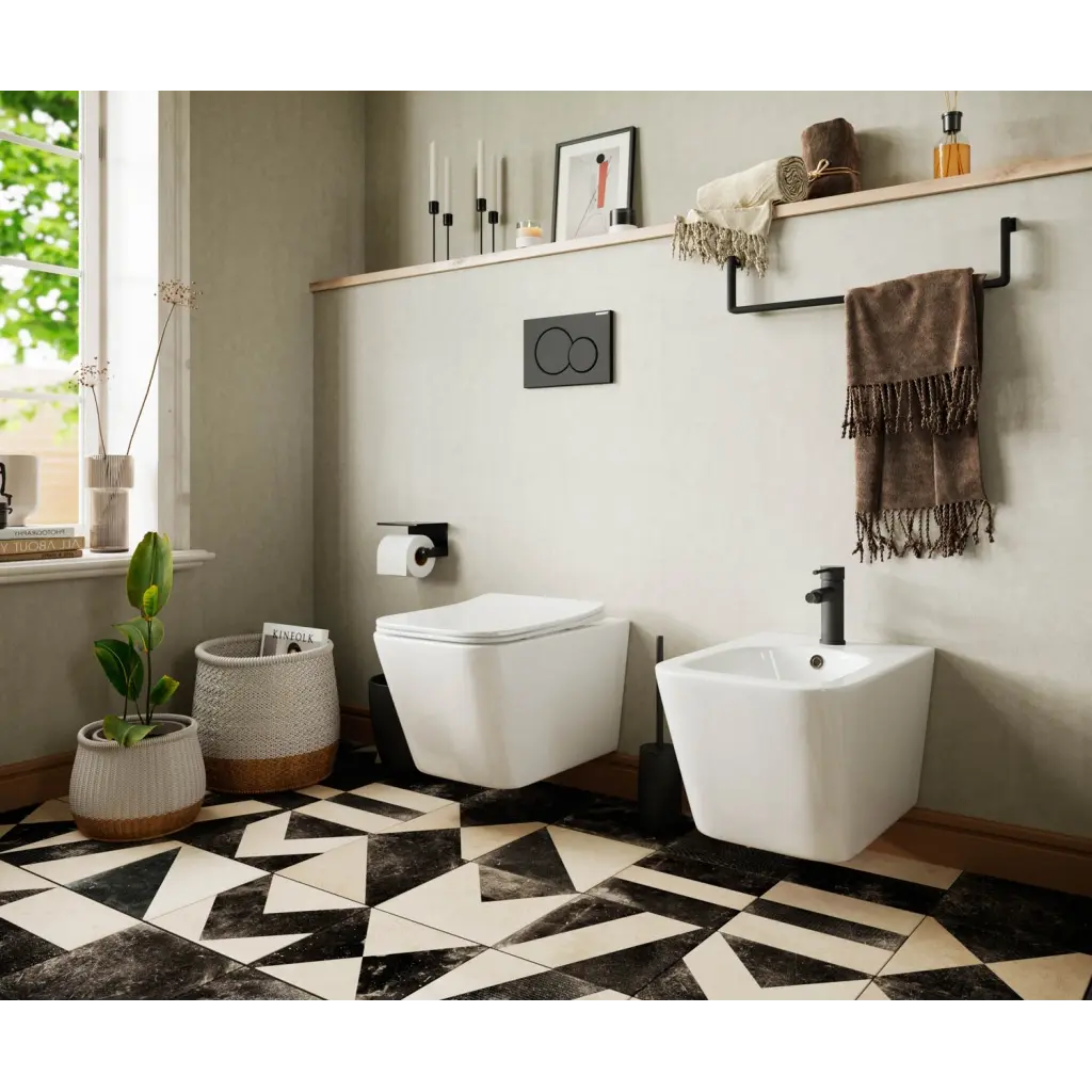 Подвесной унитаз Metric Rimless, глубокий смыв, с крепежом для полностью скрытого монтажа, ультра тонким с сидением и крышкой с функцией плавного закрытия, дюропласт