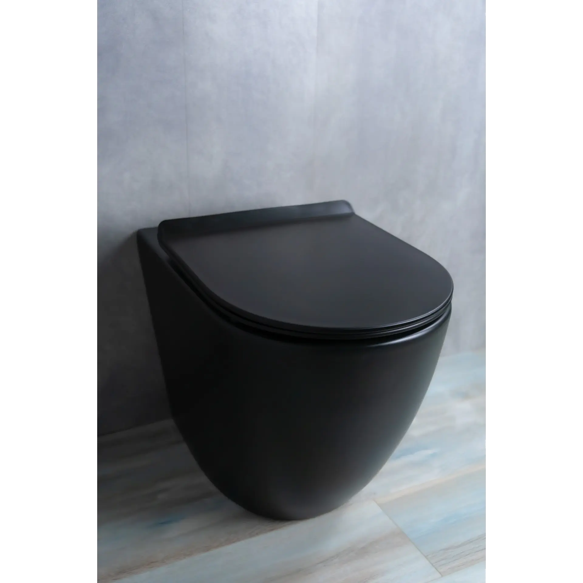 Керамический приставной унитаз Gid TRS-269BM черный матовый безободковый с сиденьем микролифт из прочного дюропласта привлекает удобством и простотой монтажа. Продукт выполнен из эколгоичных и безопасных матриалов.