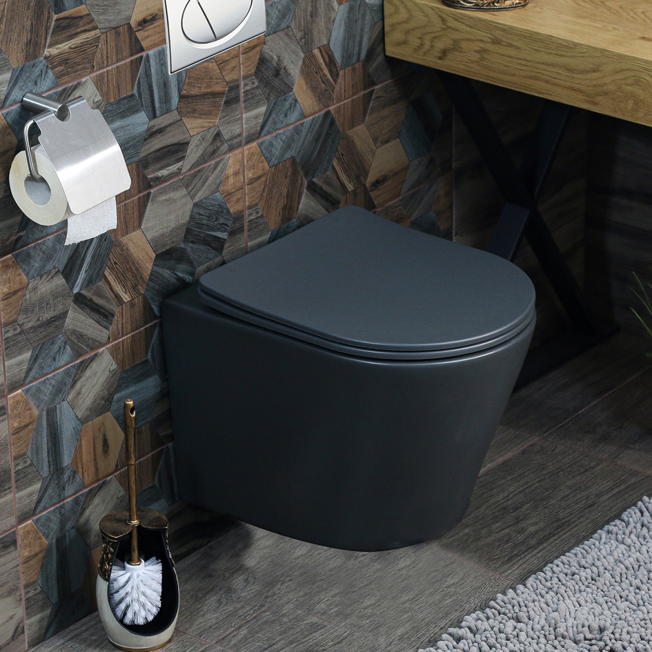 Унитаз подвесной безободковый MLN-310302MDG (матовый темно-серый), крышка дюропласт