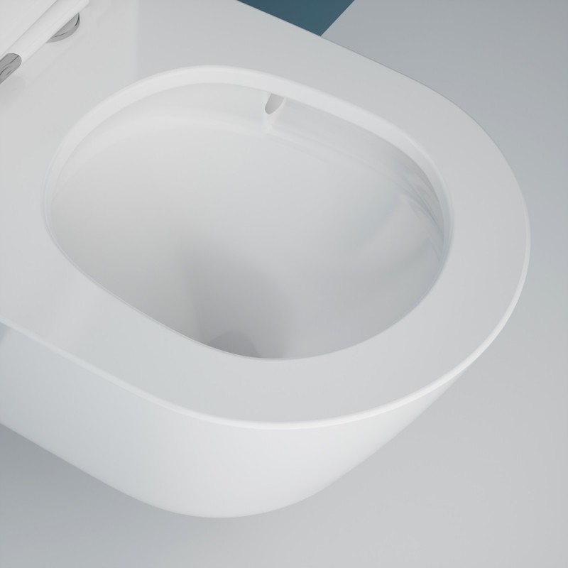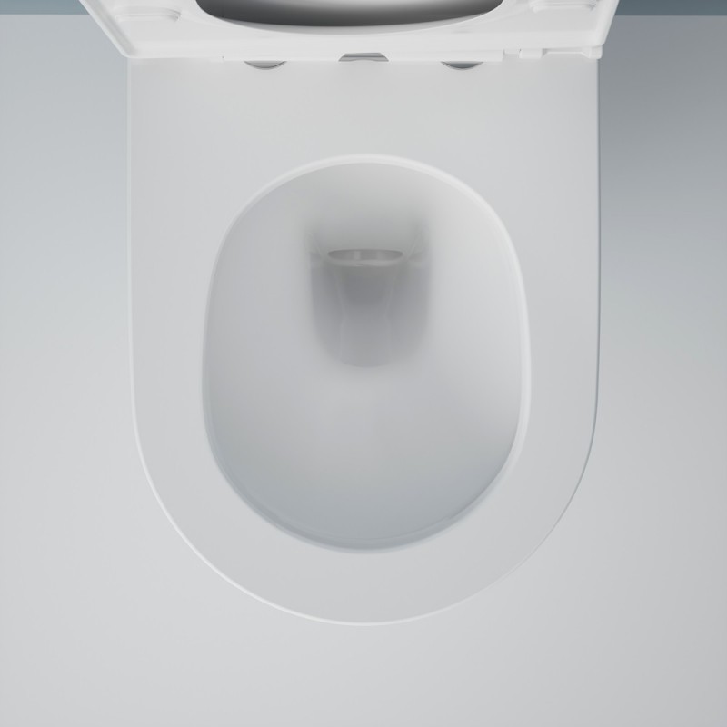 Унитаз подвесной ESBANO - CLAVEL-53T (White):-унитаз безободковый с системой смыва ТОРНАДО-горизонтальный выпуск P-Trap-диаметр выпуска 100мм-меж осевое крепление 180мм-материал: фаянс-цвет: белый -сиденье: DUROPLAST с крышкой "soft-close" - плавное опускание (микролифт), быстросъемное, металлические накладки, металлический крепеж на петлях