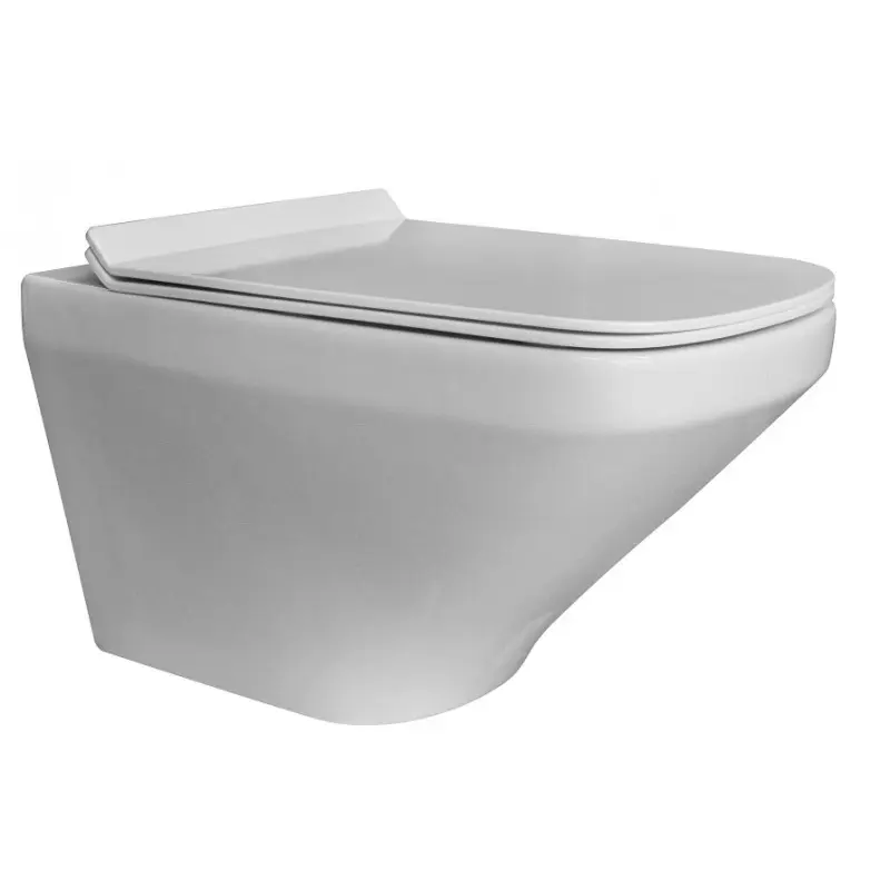 Унитаз подвесной ESBANO - ONIX (White):-унитаз с безободковой системой слива-горизонтальный выпуск P-Trap-диаметр выпуска 100мм-меж осевое крепление 180мм-материал: фаянс-цвет: белый. -сиденье: DUROPLAST с крышкой "soft-close" - плавное опускание (микролифт), быстросъемное, металлические накладки, металлический крепеж на петлях