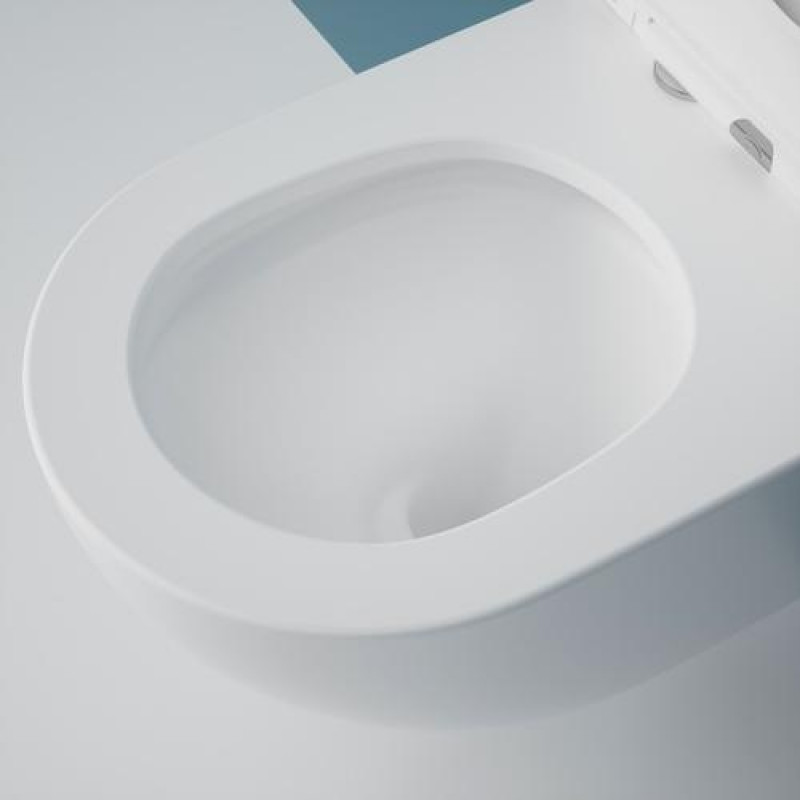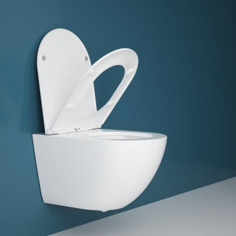 Унитаз подвесной ESBANO - FORTEX-53T (White):-унитаз безободковый с системой смыва ТОРНАДО-горизонтальный выпуск-диаметр выпуска 100мм-материал: фаянс-цвет: чёрный матовый-сиденье: DUROPLAST с крышкой "soft-close" - плавное опускание (микролифт), быстросъемное, металлические накладки, металлический крепеж на петлях