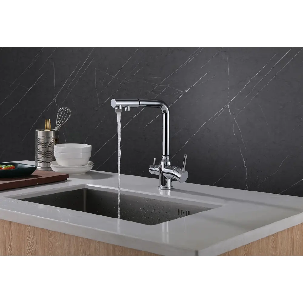 Смеситель ABBER Emotion AF8814 для кухни с подключением фильтра и выдвижной лейкой, хром