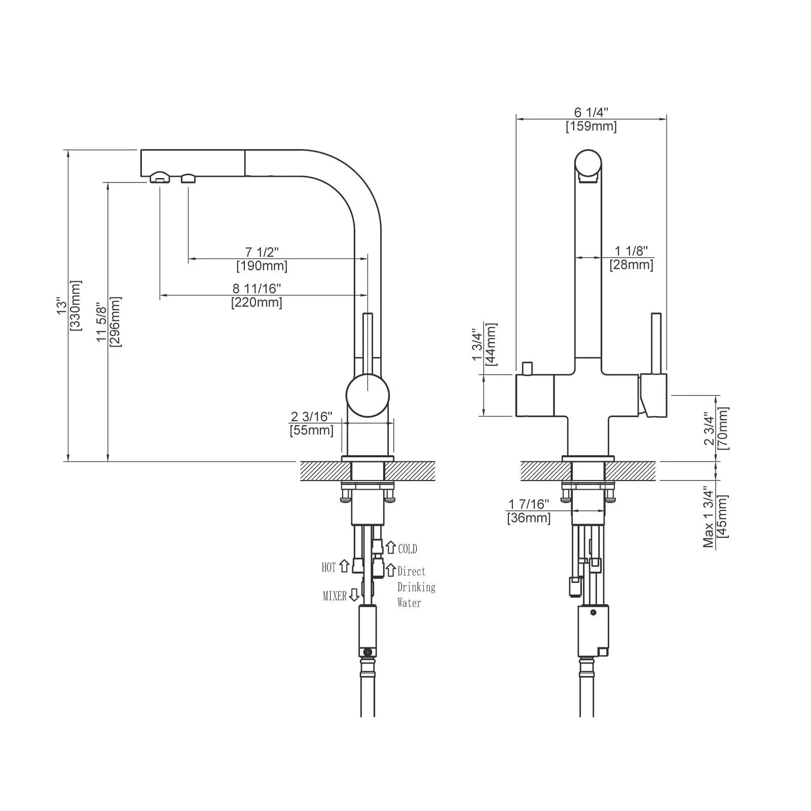 Смеситель для кухни с подключением фильтра и выдвижной лейкой Timo Saona 2356/03FL