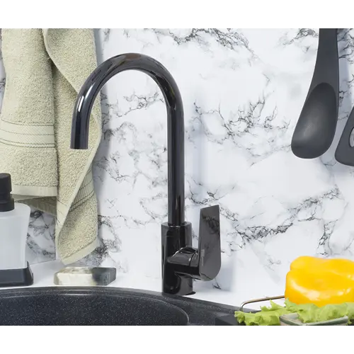 PVD-покрытие черный глянец. Очищенное заранее изделие, помещается в вакуум, где с помощью конденсации пара наносится покрытие. При этом, конденсат пара содержит частицы необходимых металлов для получения нужного цвета. Далее наносится лак и изделие отправляется сушиться. Керамический поворотный переключатель Работает при нулевом давлении. Для переключения на душ или излив необходимо повернуть переключатель в любую сторону на 90°. А