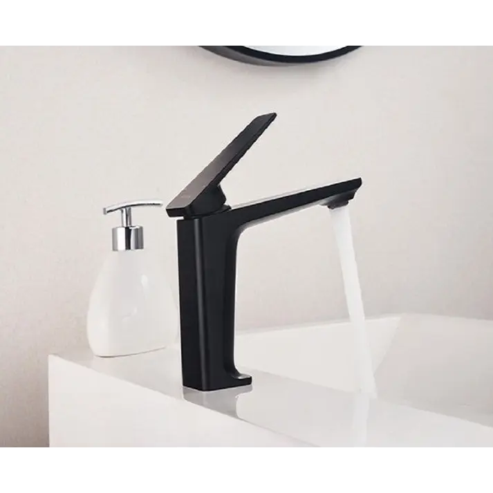 Однорычажный смеситель для раковины в черном цвете сочетает в себе качественные надежные материалы и современный минималистичный дизайн, который станет дополнением любой ванной комнаты. Матовое покрытие смесителя для умывальника легко очищается и делает незаметными капли воды, появляющиеся при использовании сантехники.