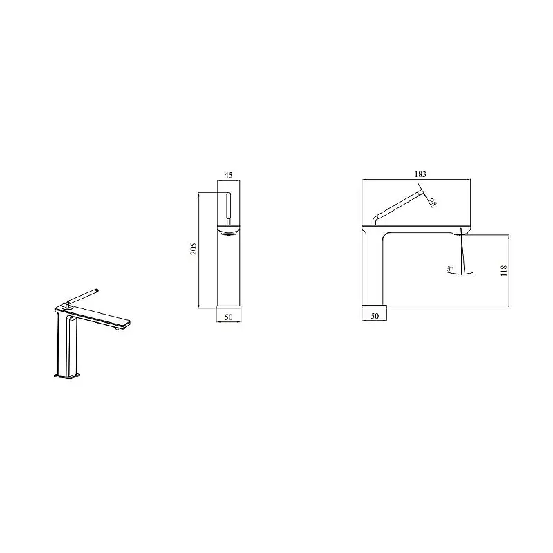 • Длина излива 153 мм