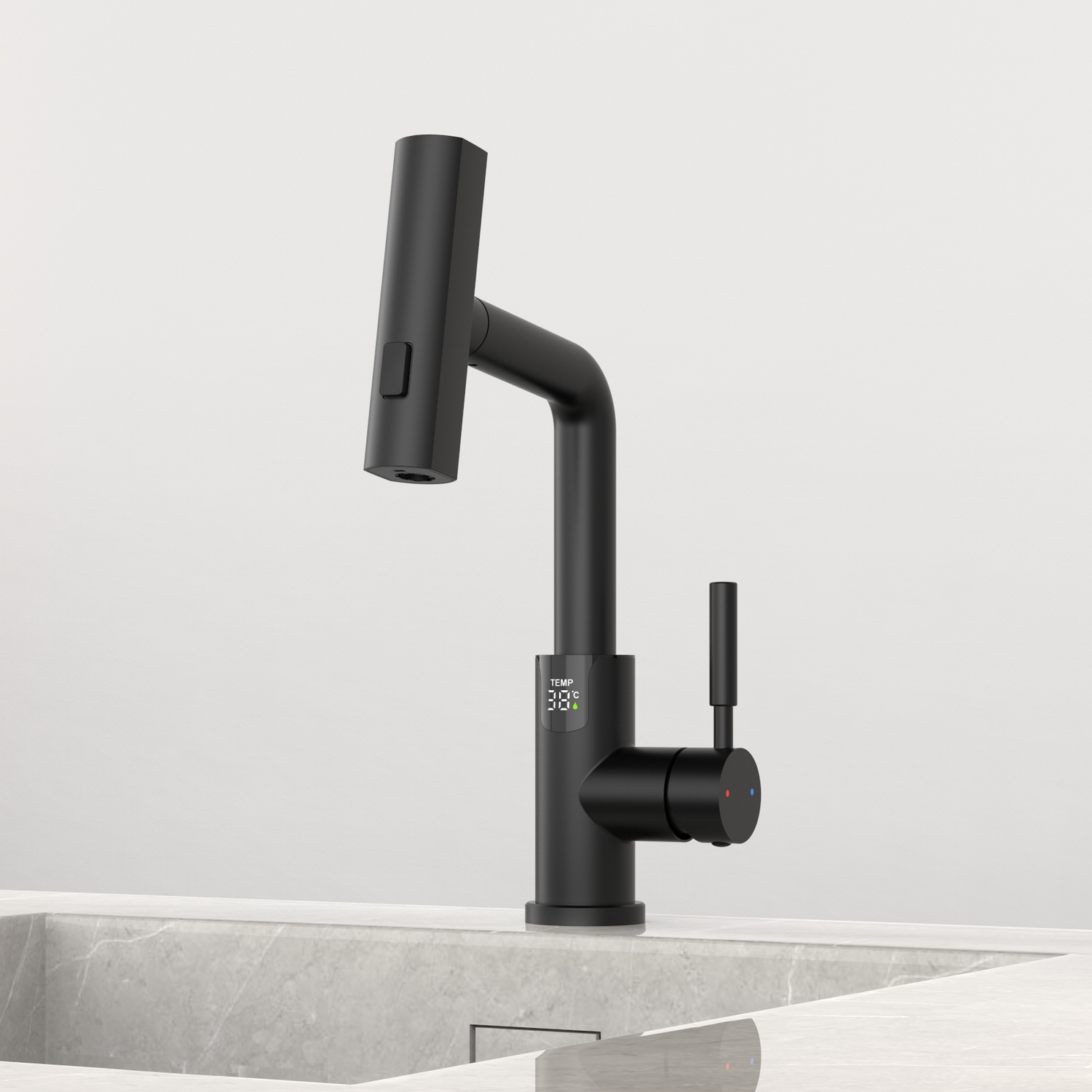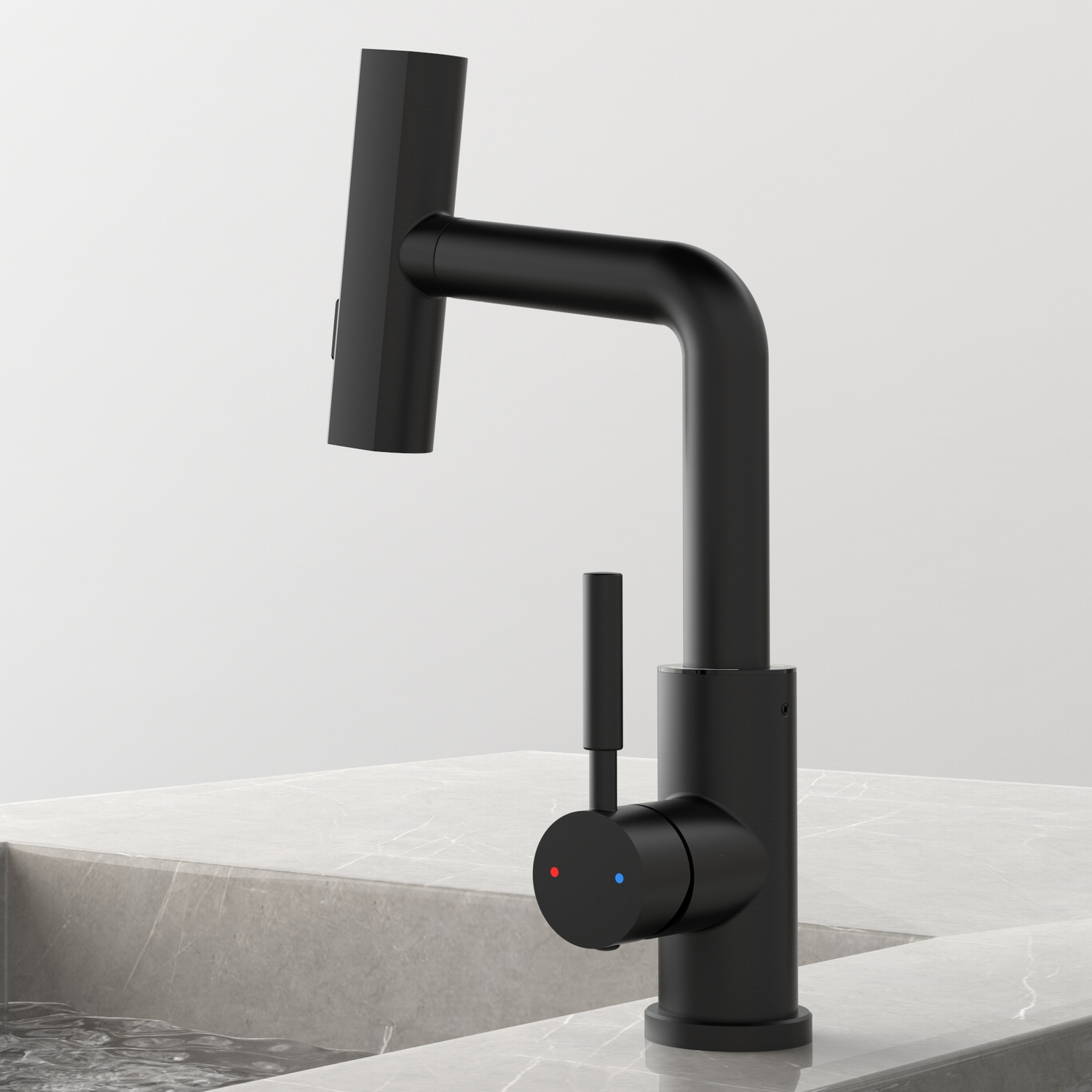 • Многофункциональный излив с возможностью настройки высоты и длинны с помощью вытяжного шланга