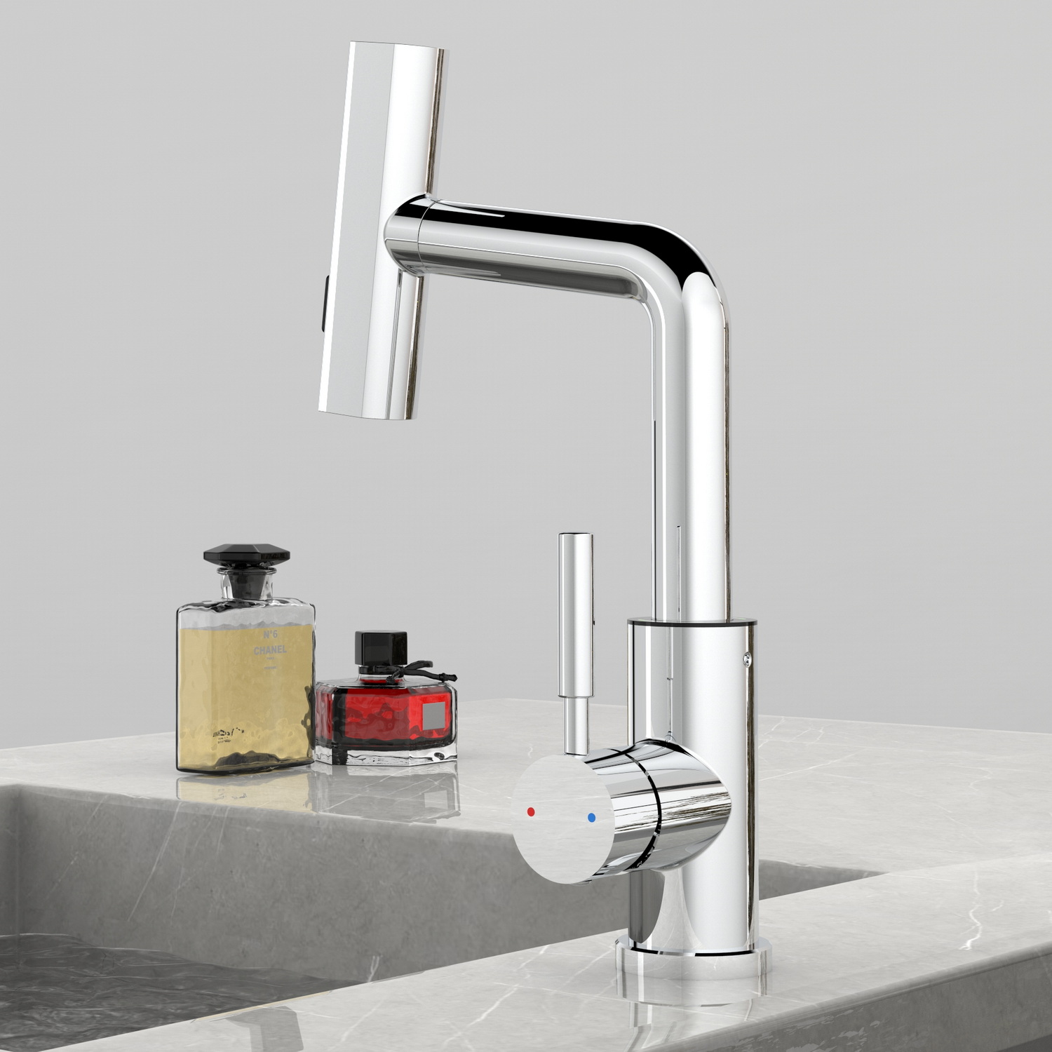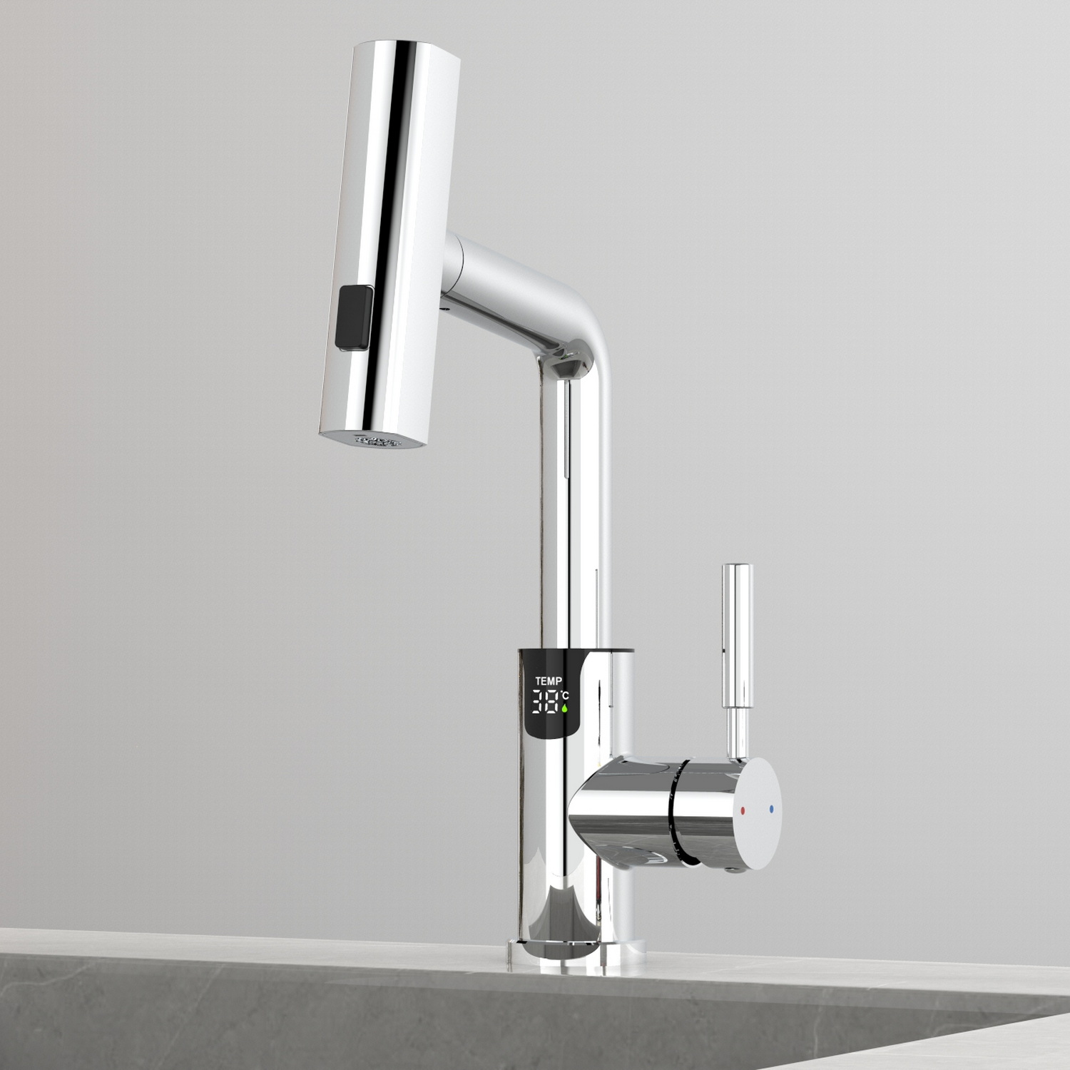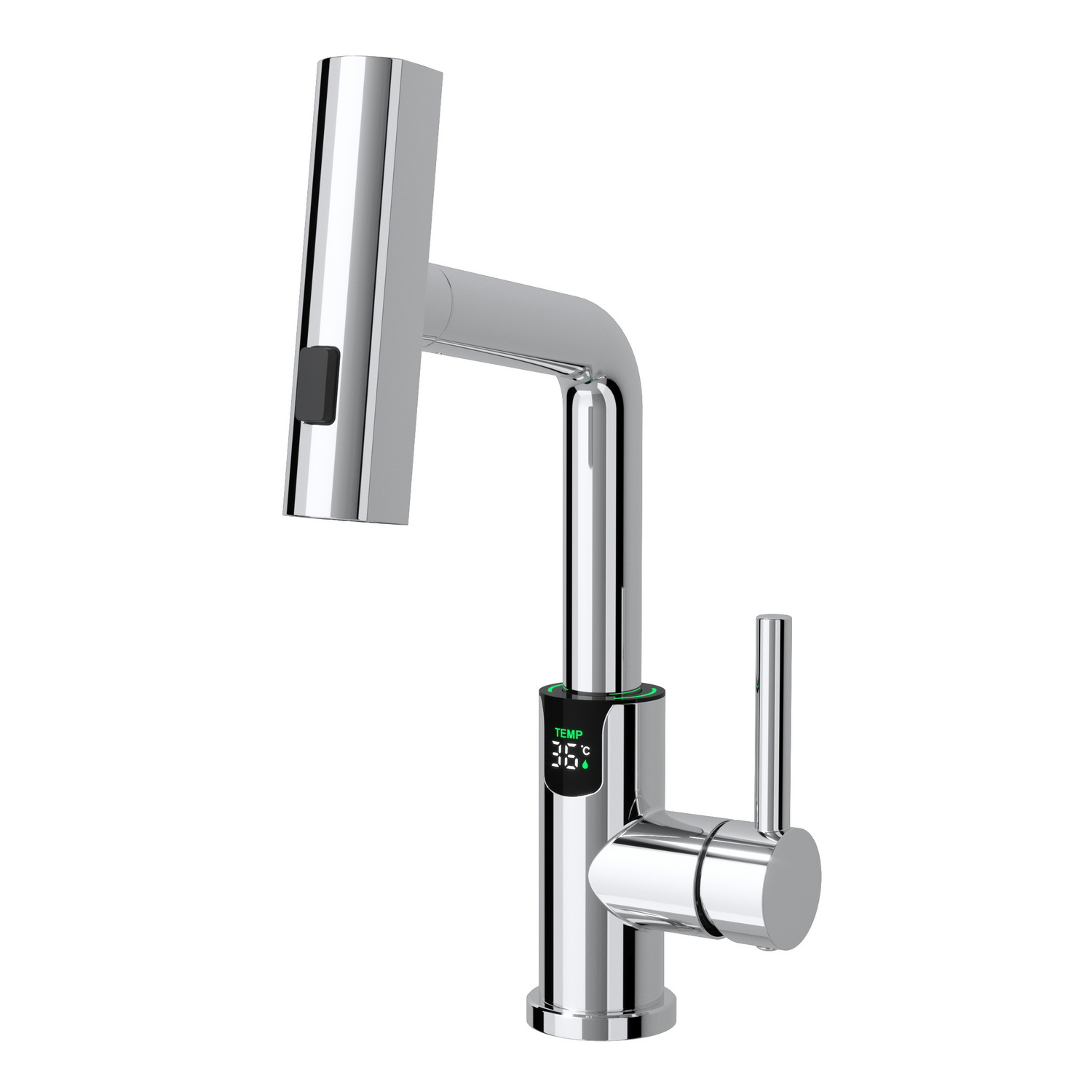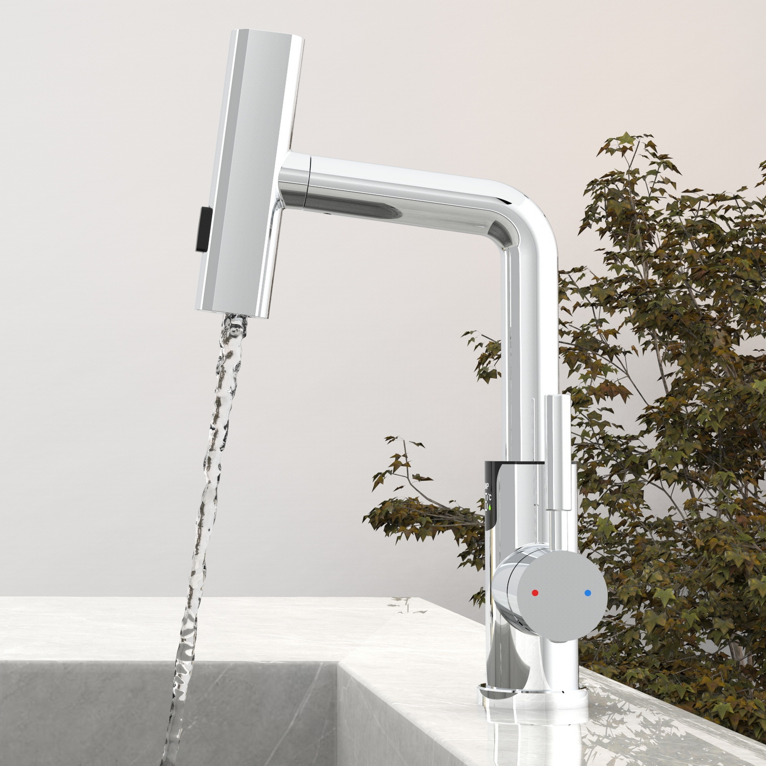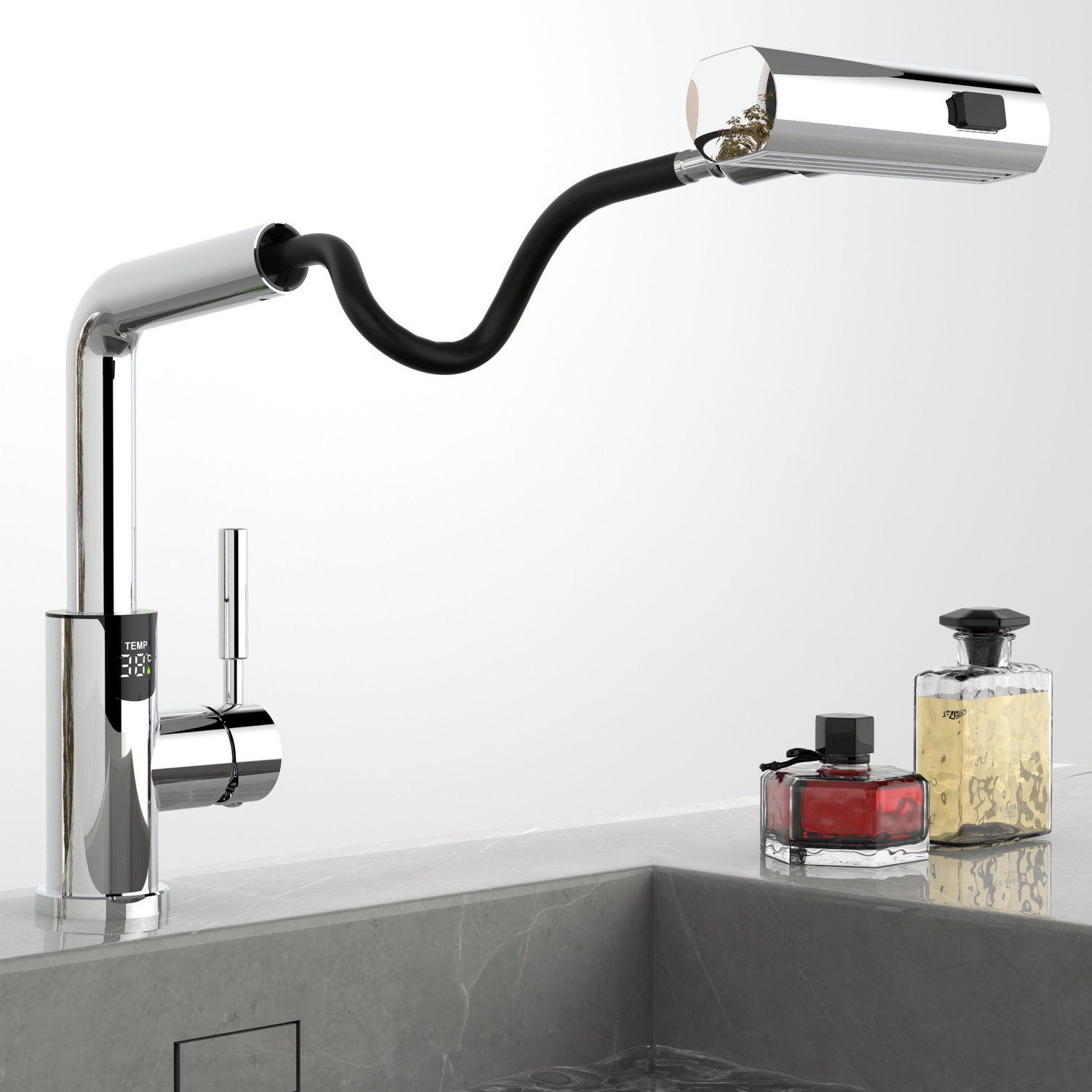 • Многофункциональный излив с возможностью настройки высоты и длинны с помощью вытяжного шланга