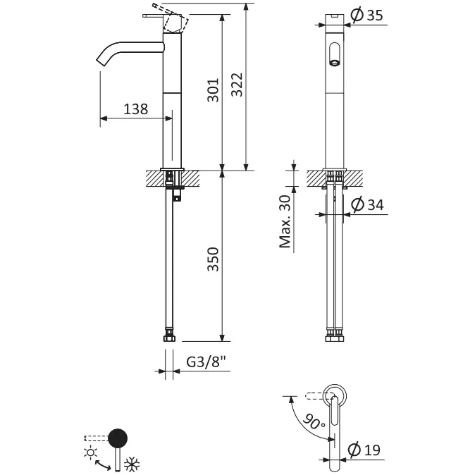 LEAF-LC2-L-NOP Смеситель для накладной раковины однорычажный, с донным клапаном, исполнение Чёрный матовый