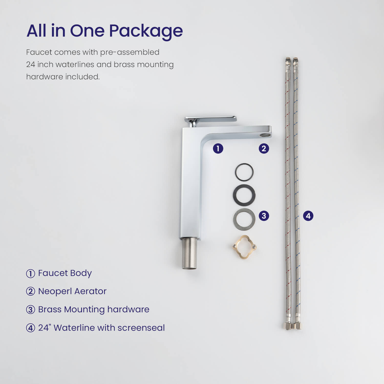 Смеситель-1шт.Гибкая подводка-2шт.Набор креплений-1шт.Инструкция-1шт