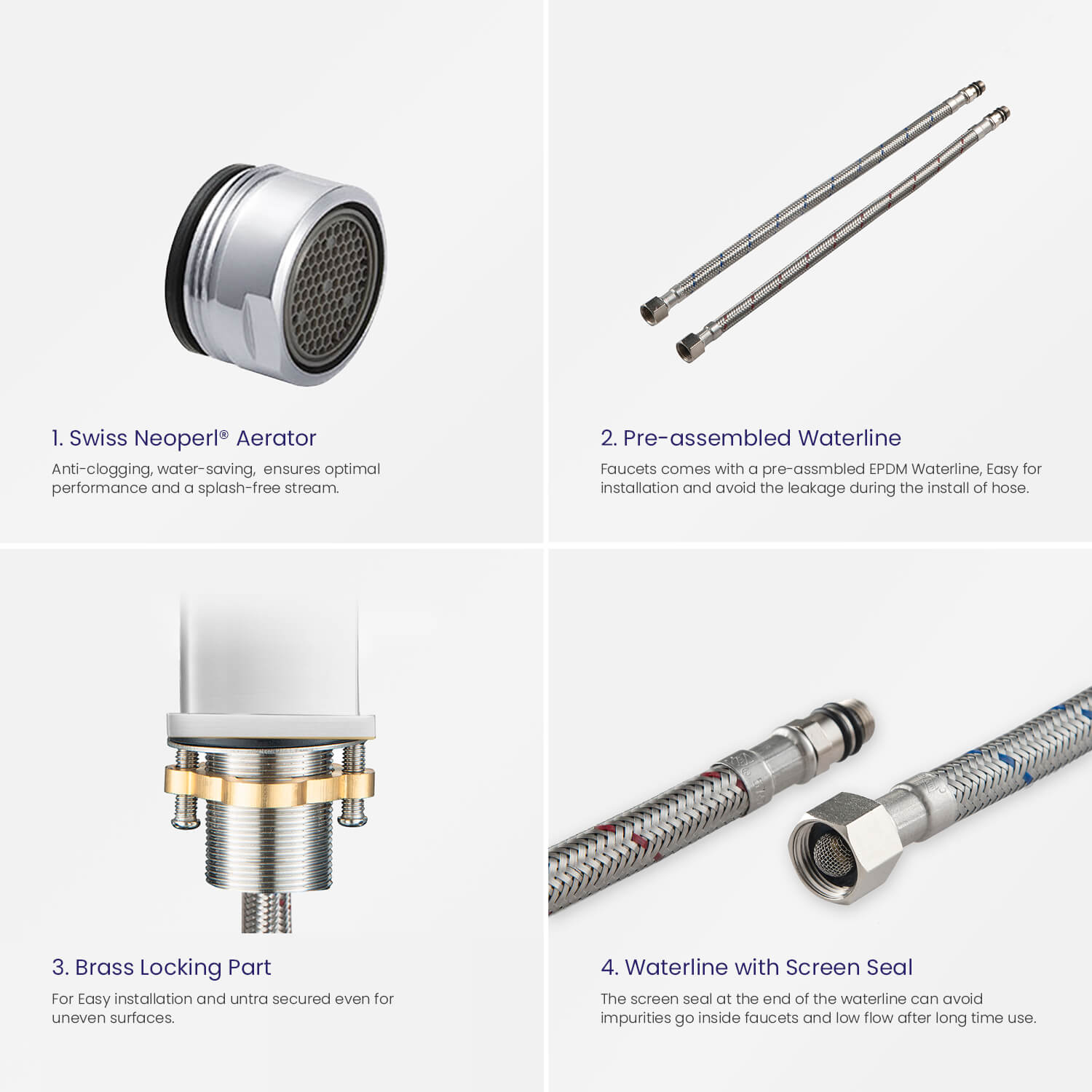 Смеситель-1шт.Гибкая подводка-2шт.Набор креплений-1шт.Инструкция-1шт