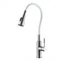 - Преимущества: удобный гибкий излив, 2-функциональный аэратор; специальный картридж, который исключает контакт рукоятки смесителя со стеной
