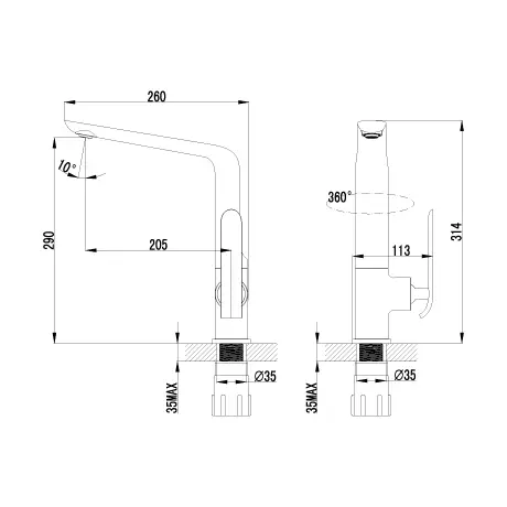 - Скрытый аэратор Neoperl Slim SSR с изменяемым углом подачи воды