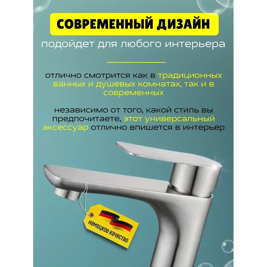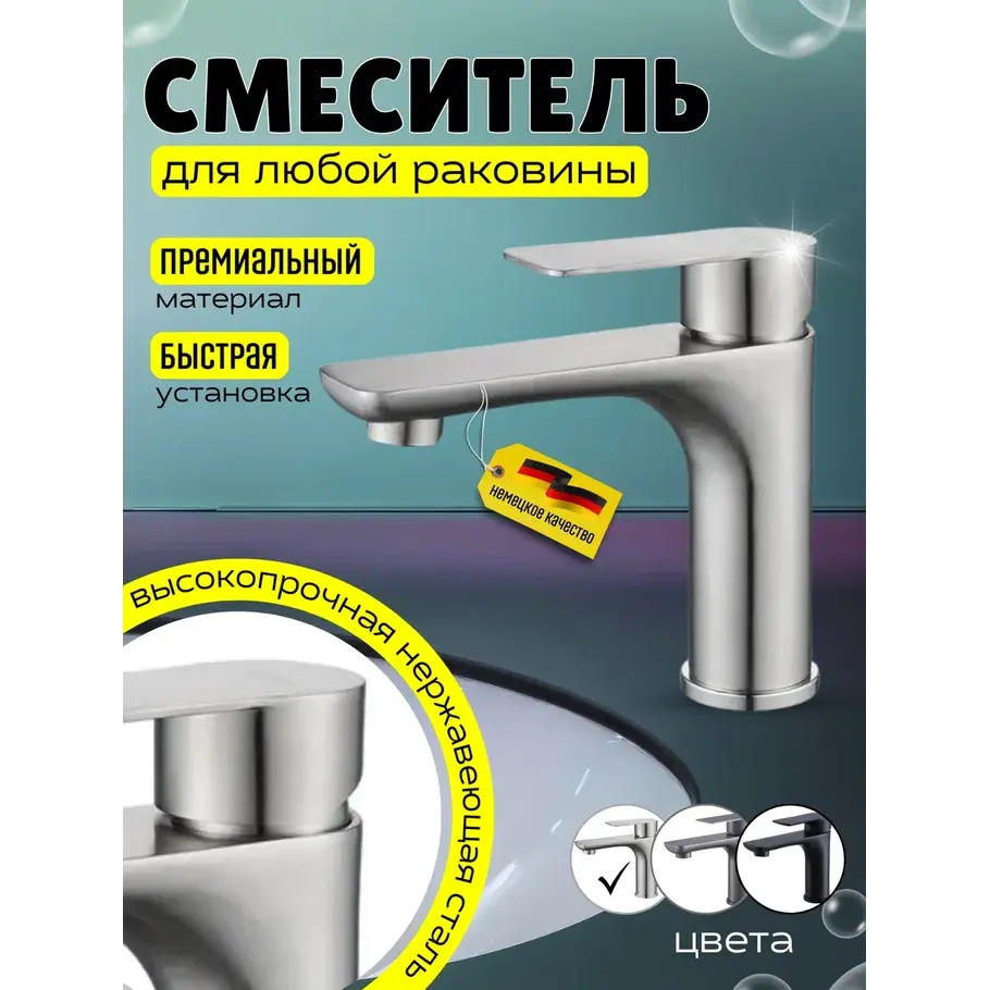 Смеситель для раковины ACWEN выполнен из пищевой нержавеющей стали , которая не содержит вредных примесей и отличается хорошими противокоррозионным свойствами, а также имеет длительный срок эксплуатации. Монтаж на одно отверстие, на гайке. Гибкая подводка. С аэратором.