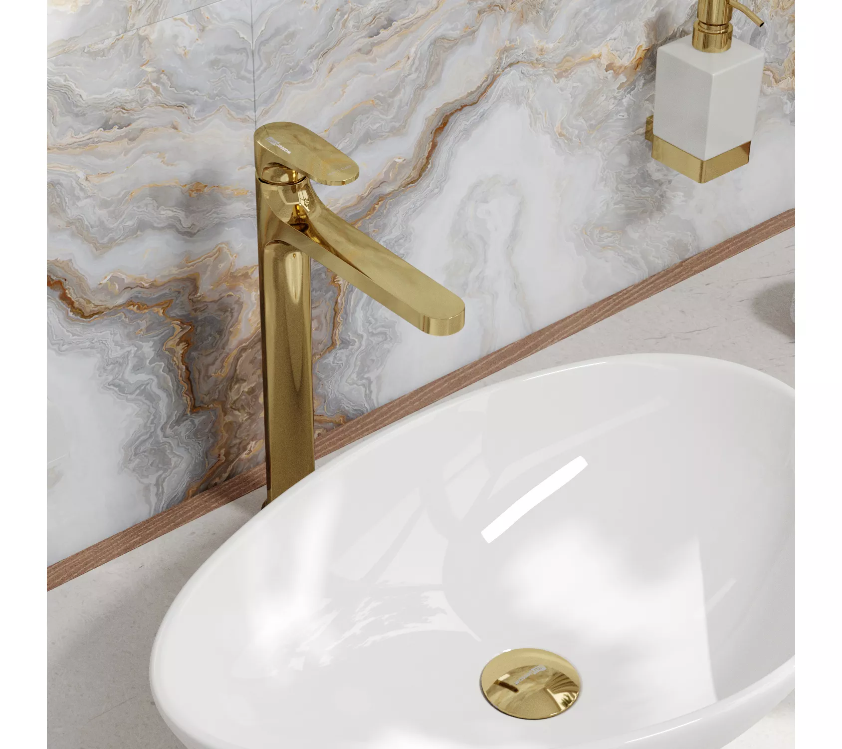 PVD-покрытие «глянцевое золото».Покрытие помогает защитить поверхность изделий от воздействия внешней среды. Для ухода за изделиями WasserKRAFT достаточно теплой воды, мыльного раствора и сухого полотенца. Технология нанесения.Очищенное заранее изделие, помещается в вакуум, где с помощью конденсации пара наносится покрытие. При этом, конденсат пара содержит частицы необходимых металлов для получения нужного цвета. Далее наносится лак и изделие отправляется сушиться.