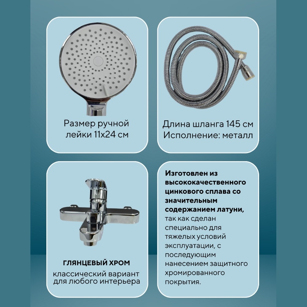 Смеситель для ванны с душем / для душевой кабины. Изготовлен из высококачественного цинкового сплава со значительным содержанием латуни, так как сделан специально для тяжелых условий эксплуатации, с последующим нанесением защитного хромированного покрытия. Используются только качественные комплектующие смесителя.