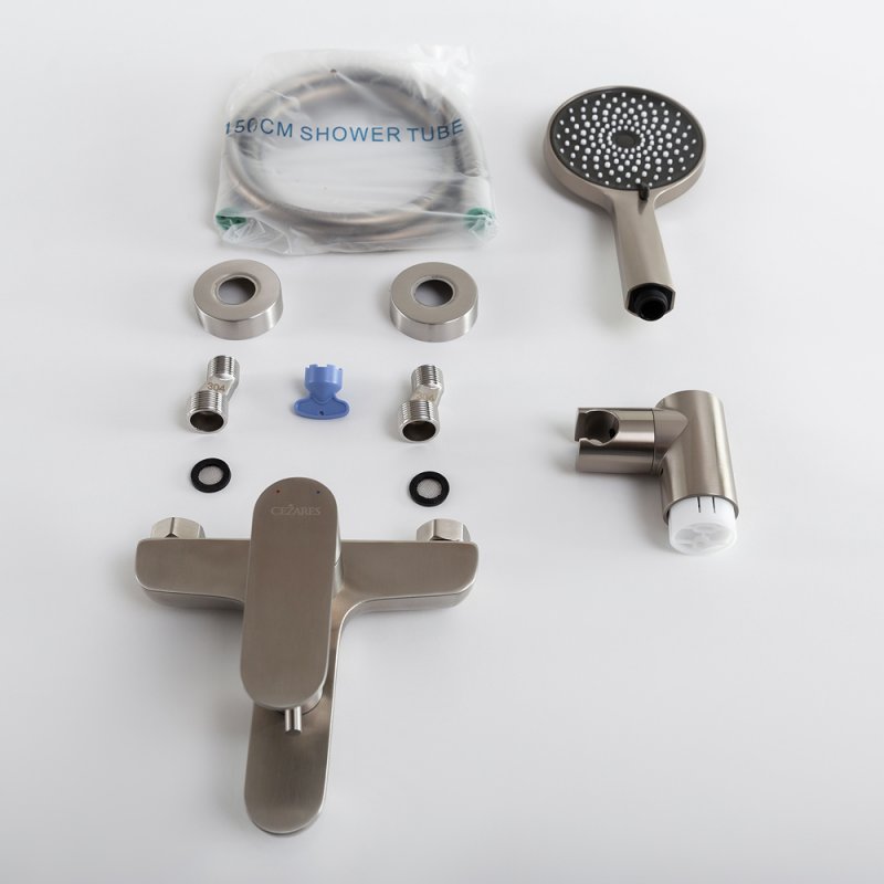 Оснащение: эксцентрики, аэратор, переключатель потоков, душевой шланг, ручной душ 3-х режимный, держатель настенный
