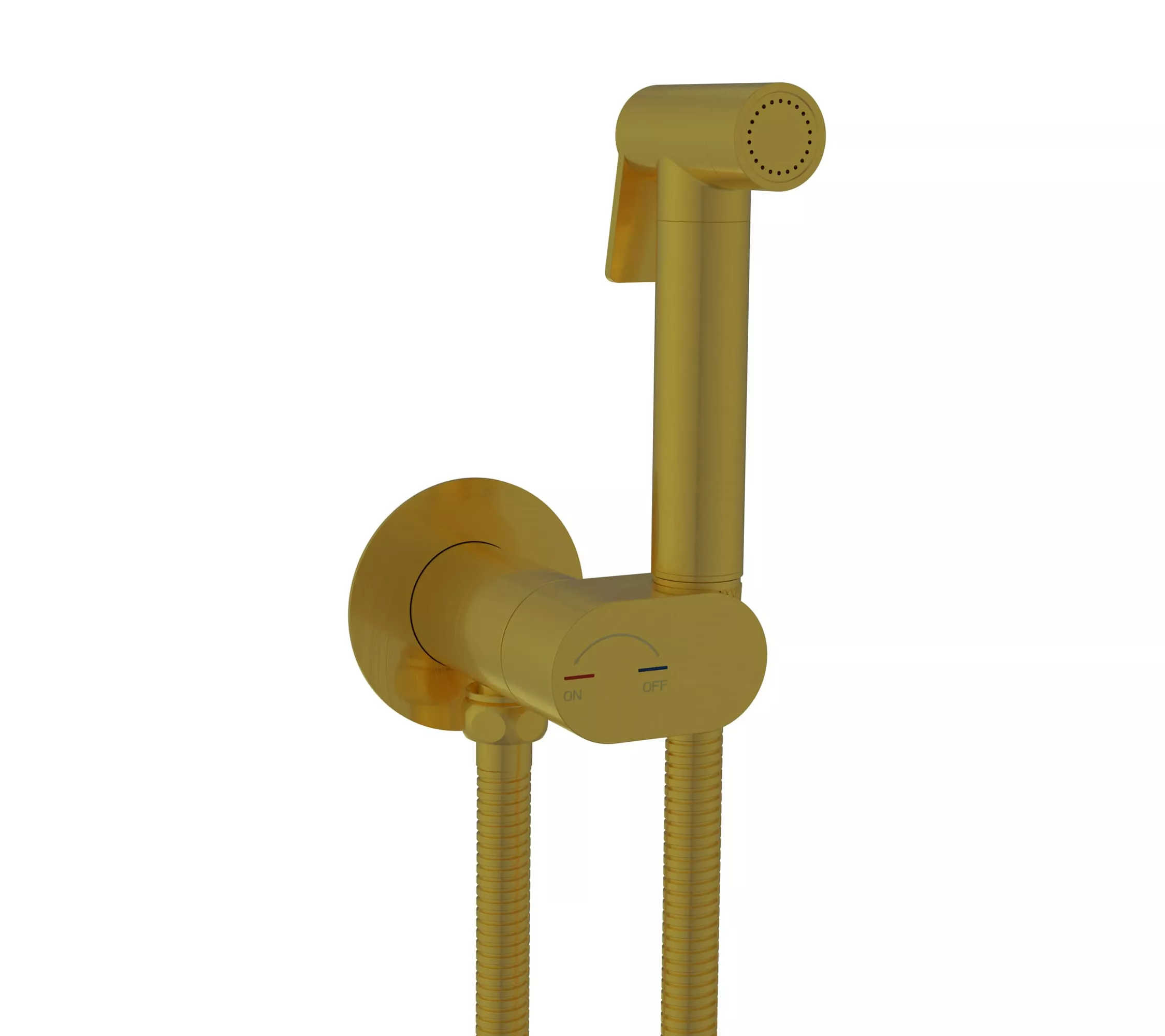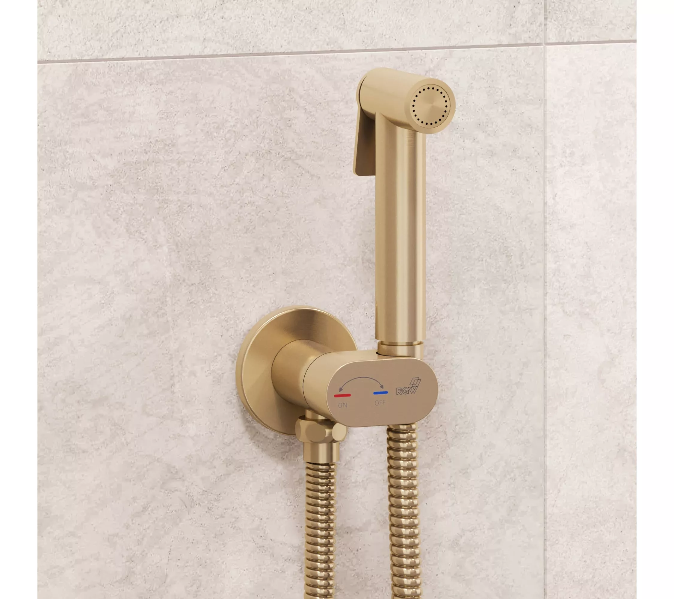 Самый миниатюрный комплект Гигиенического душа золотого цвета со смесителем и краном держателем лейки, скрытого монтажа RGW SP-213Gb, с прогрессивным поворотным картриджем, оснащён функцией «Умная блокировка». Гигиенический душ со смесителем круглой формы, инсталляционный, встройка в стену RGW SP-213Gb— это сантехническое оборудование, придуманное для соблюдения личной гигиены. Обычно его устанавливают возле унитаза, тем самым в небольших пространствах ванных комнат он заменяет биде. Первое, что приходит на ум, когда слышите «Гигиенический душ для унитаза (гигдуш — в бытовом разговоре)» — это моментальная гигиена интимной зоны сразу после туалета без использования туалетной бумаги.