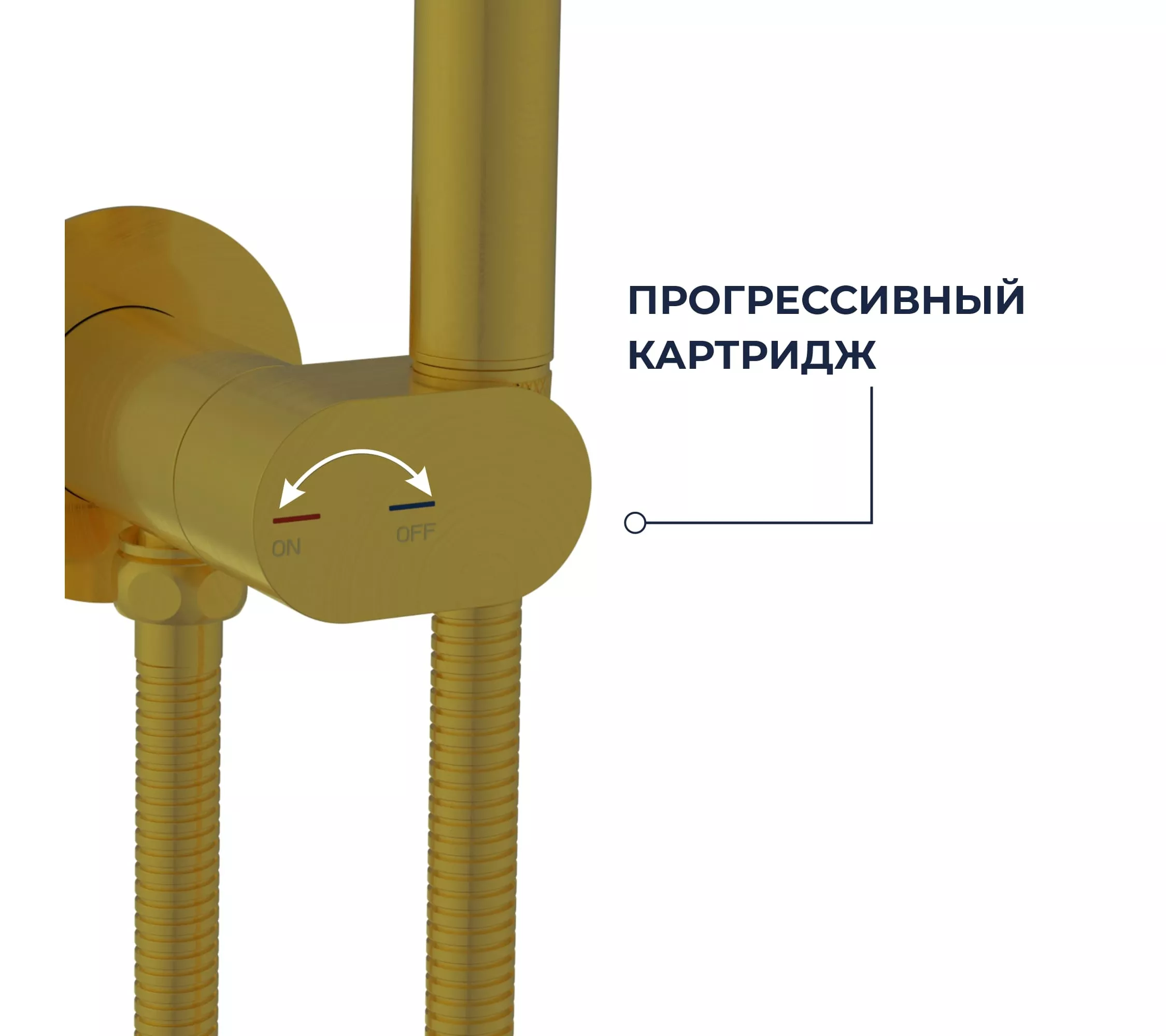 Смеситель на одно монтажное отверстие на два входа, инсталляция (встраиваемый) в стену. Керамический прогрессивный картридж. Корпус смесителя — латунь.