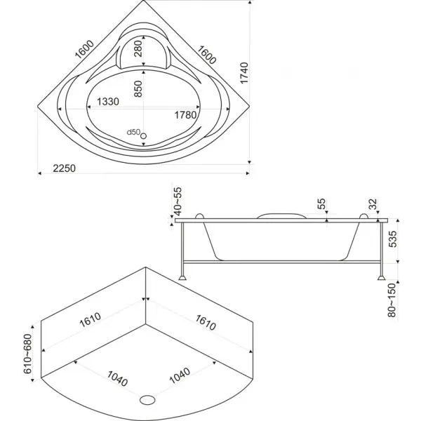 Ванна акриловая BAS Мега 160*160