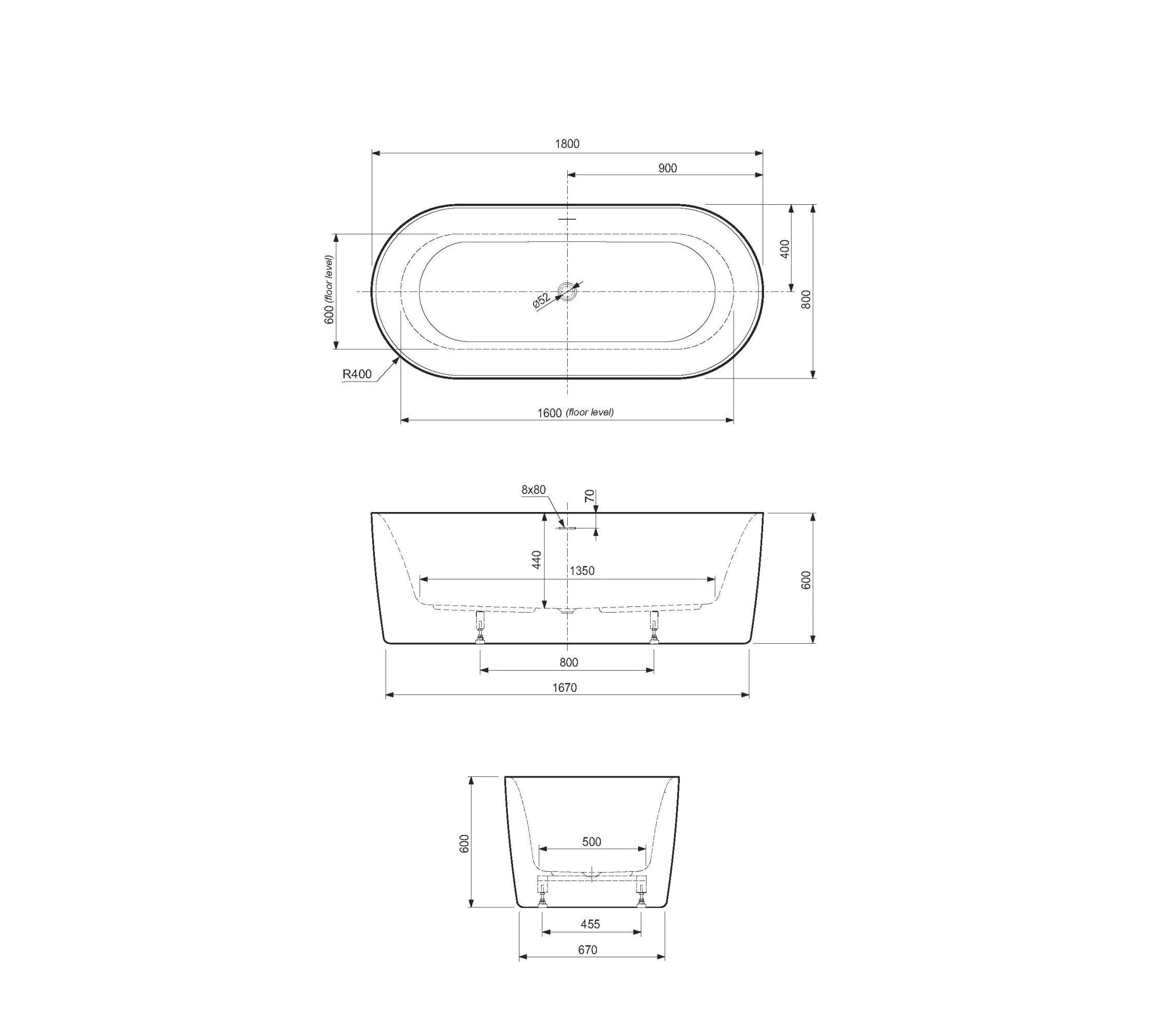 Акриловая ванна CEZARES METAURO-INT-Central-180-80-60