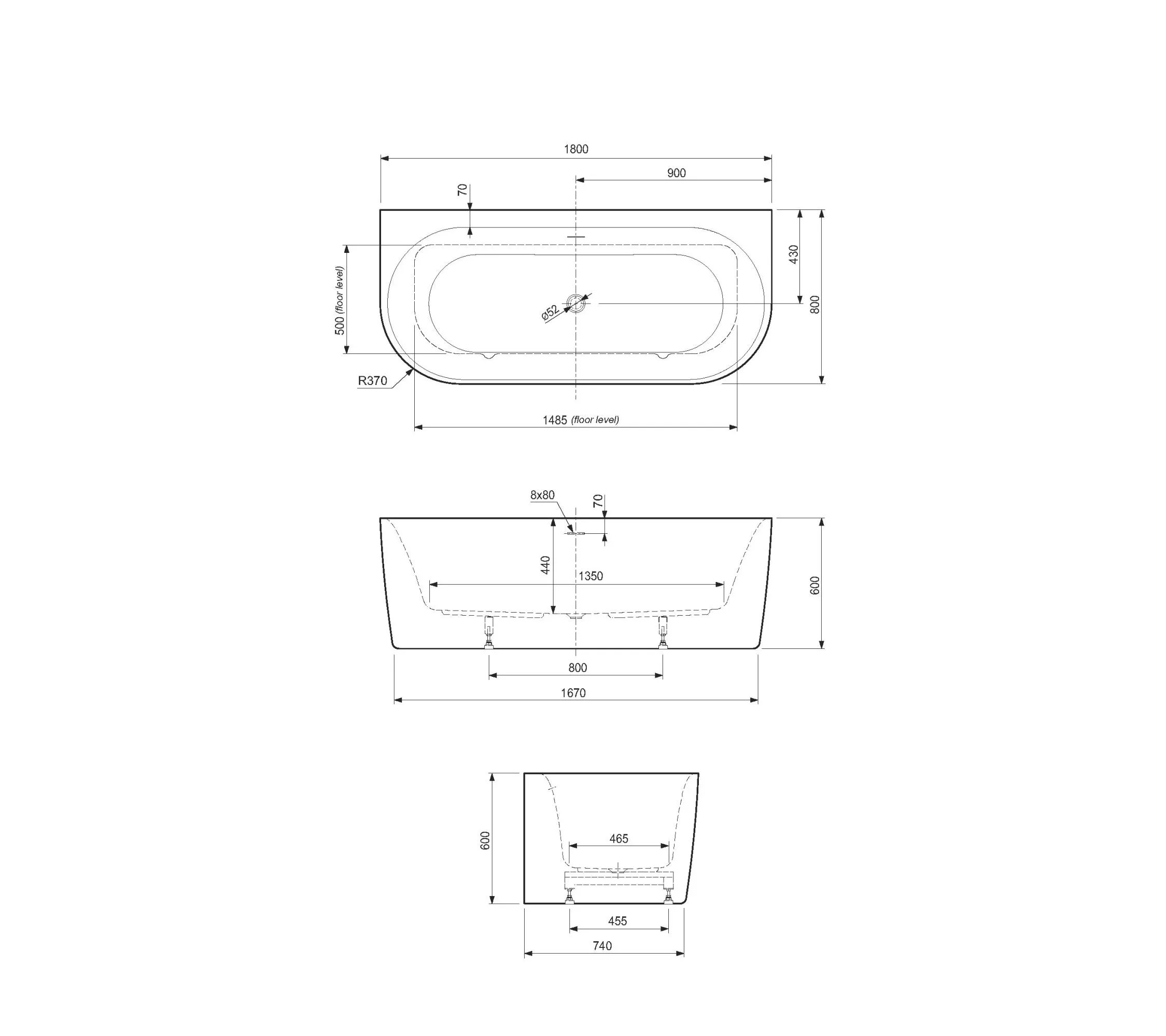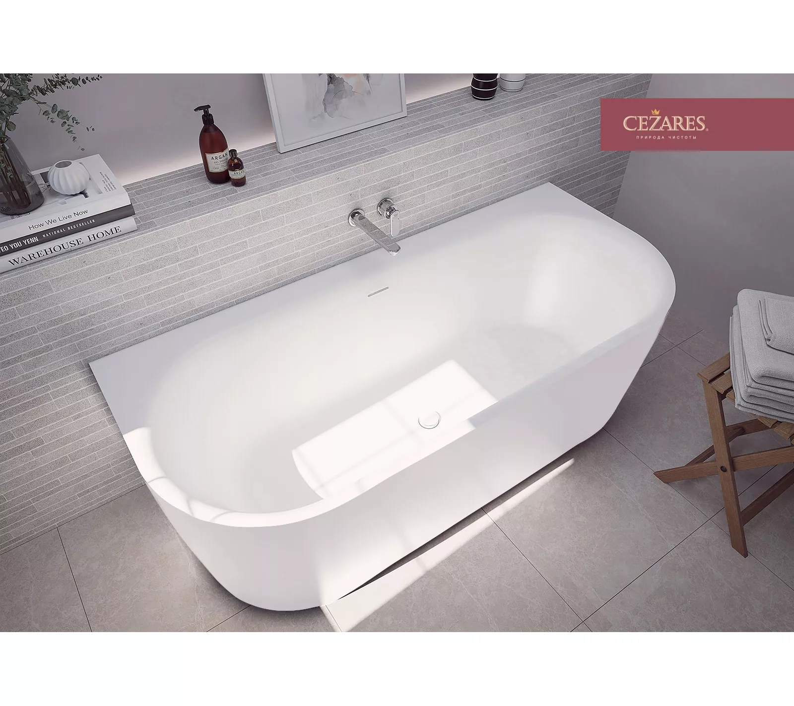 Акриловая ванна CEZARES METAURO-INT-Wall-180-80-60