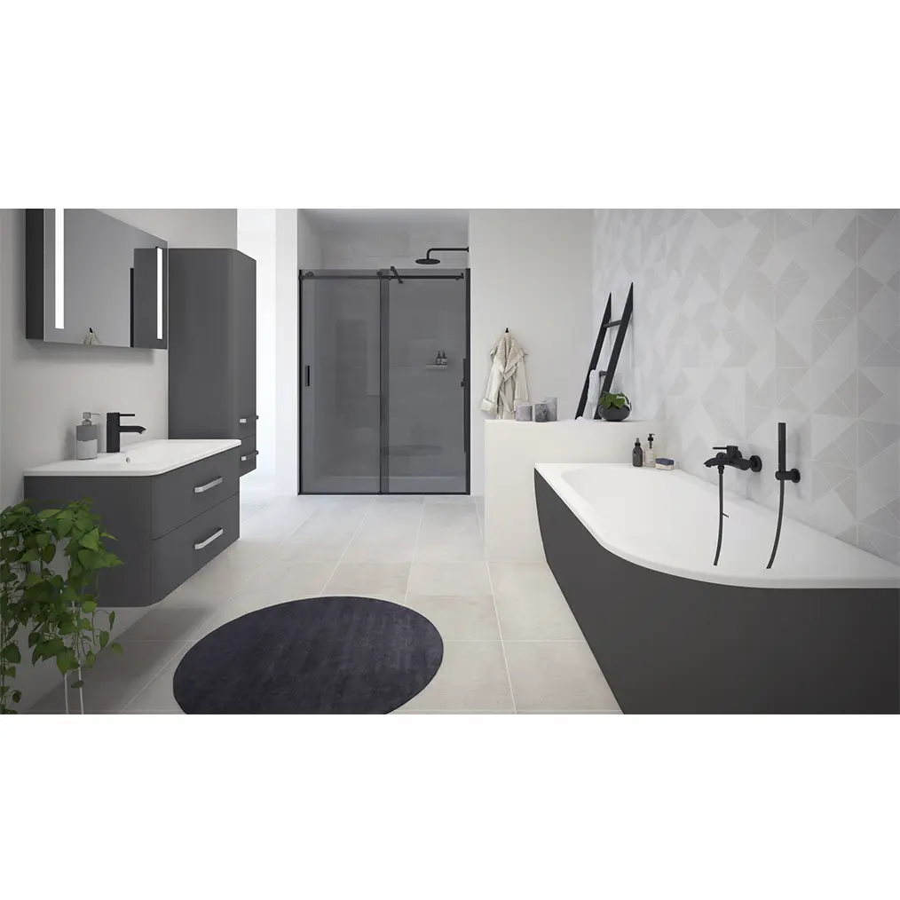 Акриловая ванна угловая левосторонняя, щелевой слив-перелив, чёрная фронтальная панель, белая чаша, 1790х790х600, SLIM CORNER-180-80-60-L-NERO-SET